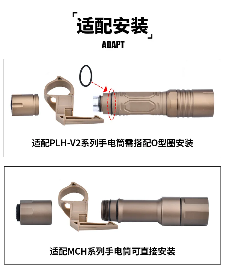 WADSN-Anillo de linterna de PLH-V2 táctico para exteriores, Clip de bolsillo, anillo de elevación multifuncional, gancho de linterna