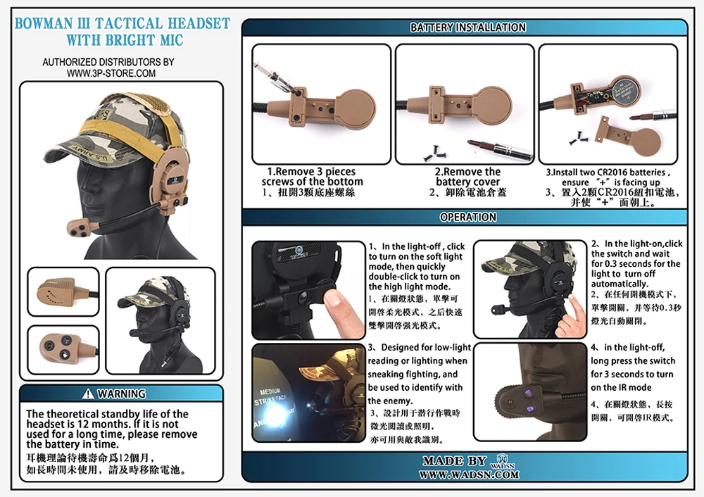 WADSN táctico auriculares BOWMAN III EVO III CS juego de auriculares para Ourtdoor caza formación Walkie Talkie casco comunicación