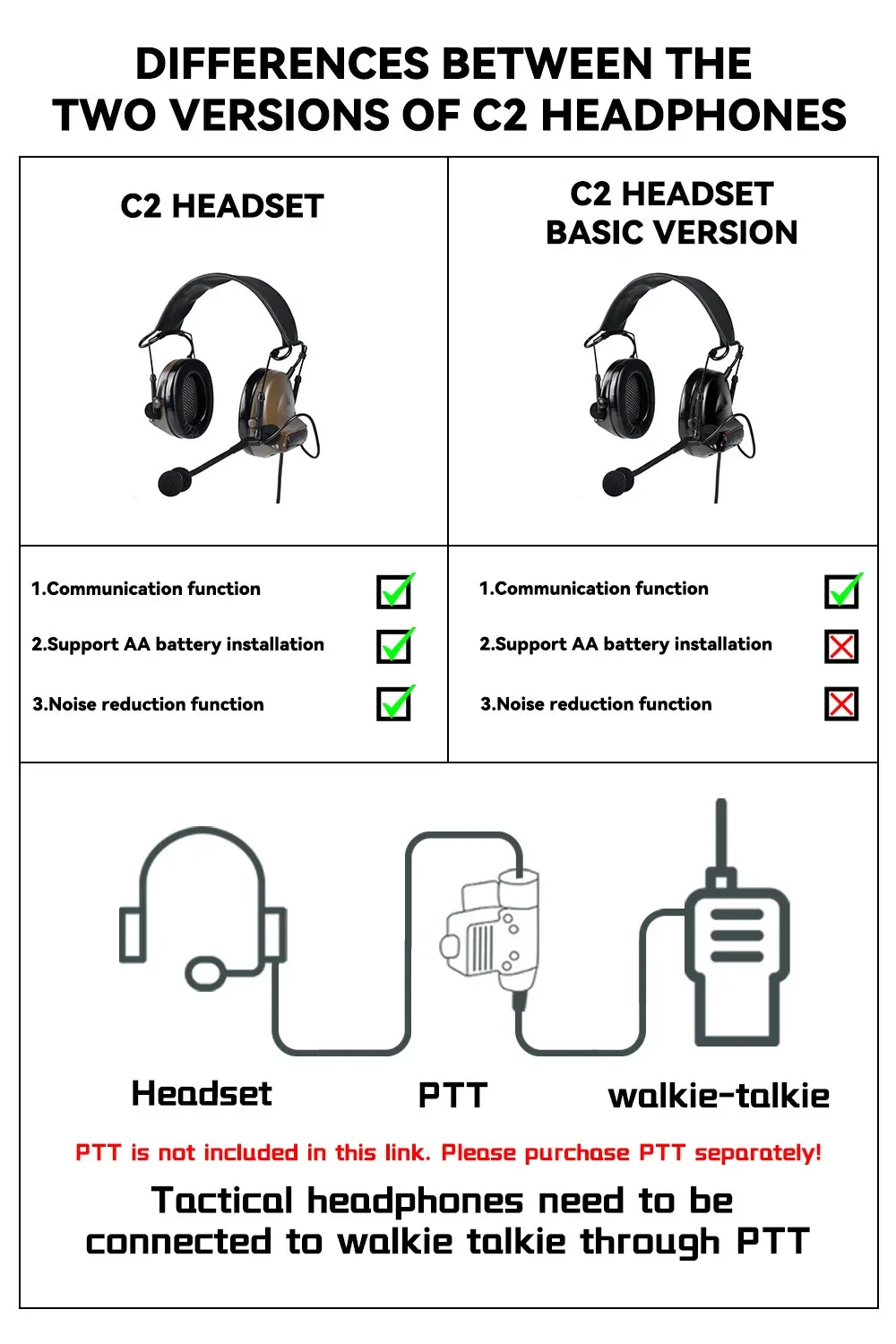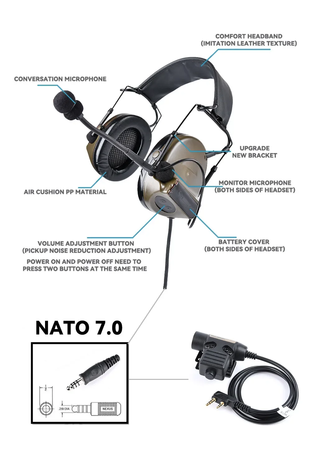 WADSN-auriculares tácticos C2 II con micrófono CS, orejeras para caza y tiro, protección auditiva