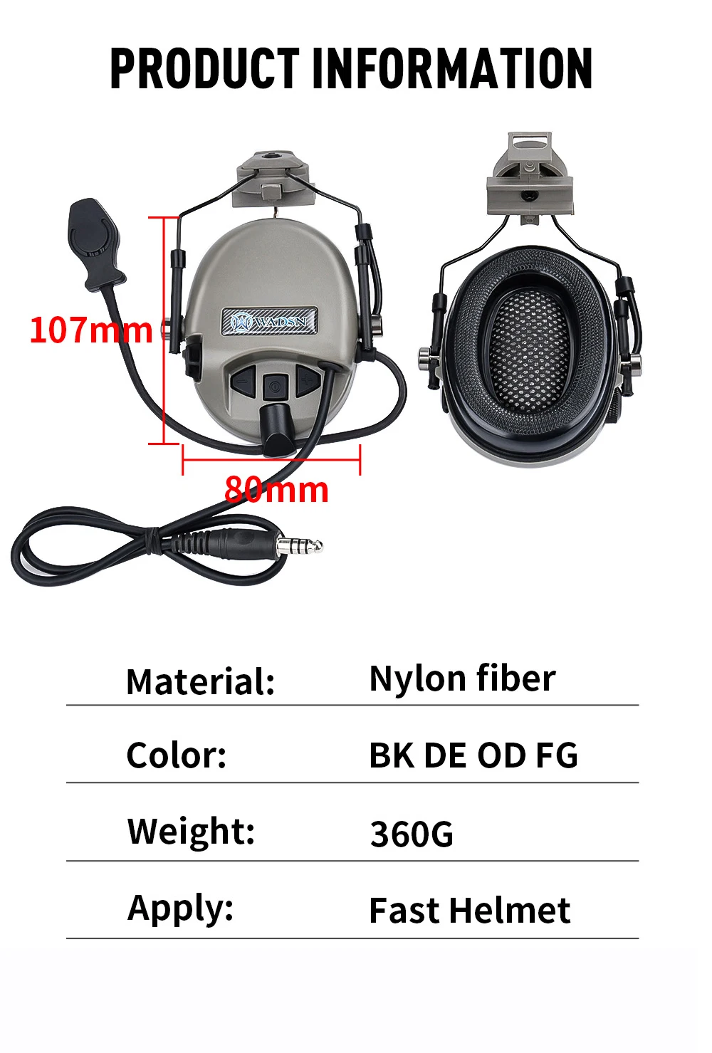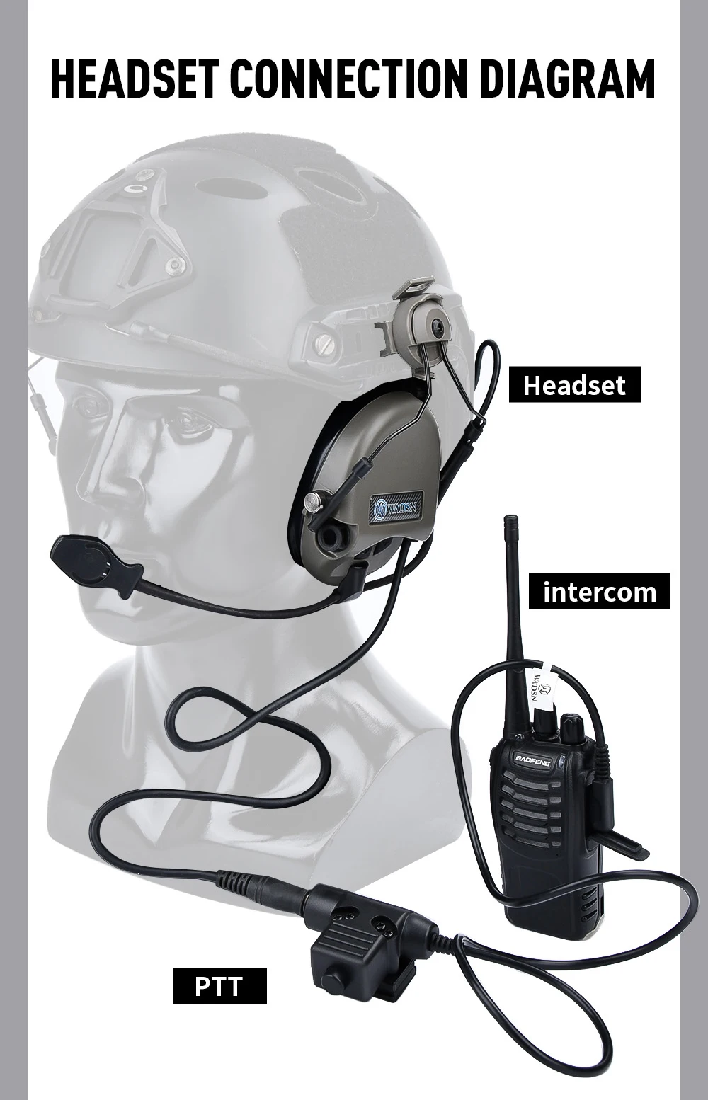 WADSN auriculares tácticos para casco, audífonos de comunicación para caza al aire libre, U94, PTT, Kenwood, sin reducción de ruido, aptos para riel Picatinny de 20mm