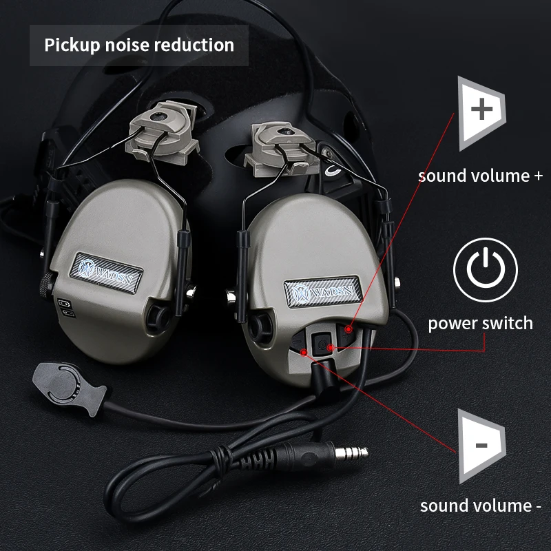 Wadsn Tactical Hunting Shooting Casco Auriculares al aire libre CS Wargame Auriculares Sordin Auriculares Reducción de ruido Adaptador de riel de 20mm + U94 PTT
