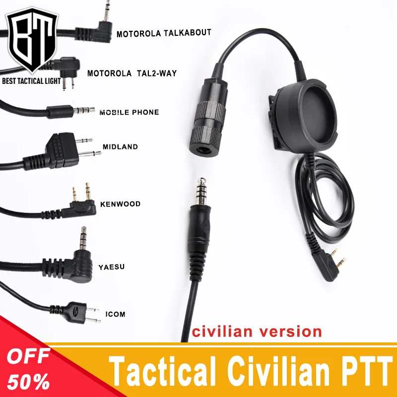 WADSN-auriculares tácticos civiles con orificio de enchufe PTT, Clip de Metal, botón grande de empuje a hablar, compatible con walkie-talkie Kenwood M1 M2