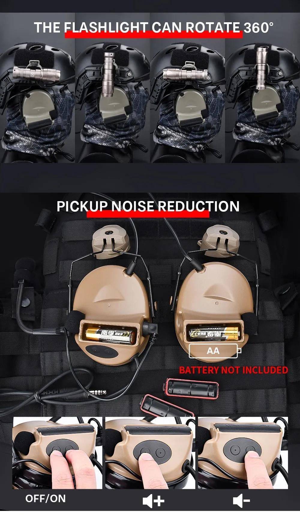 WADSN-auriculares tácticos Comtact II para caza, cascos militares con cancelación de ruido, U94PTT
