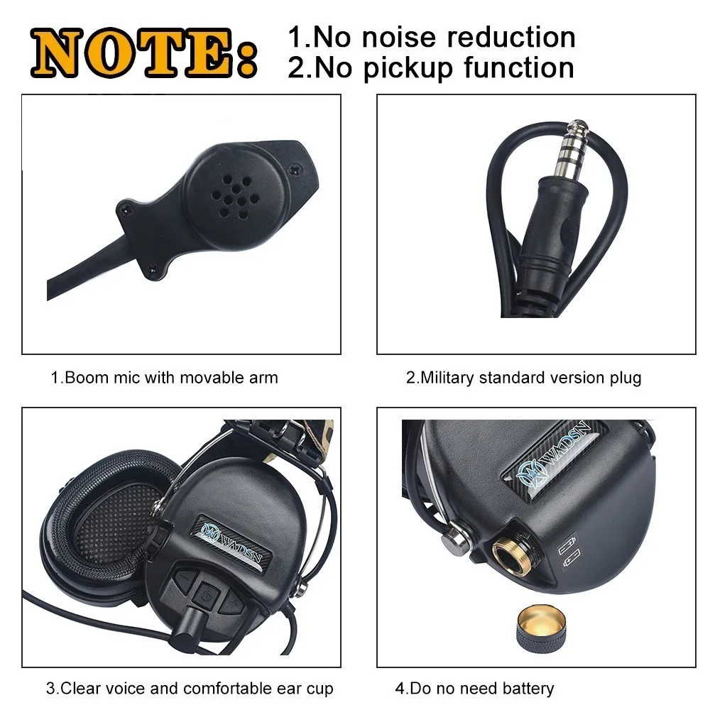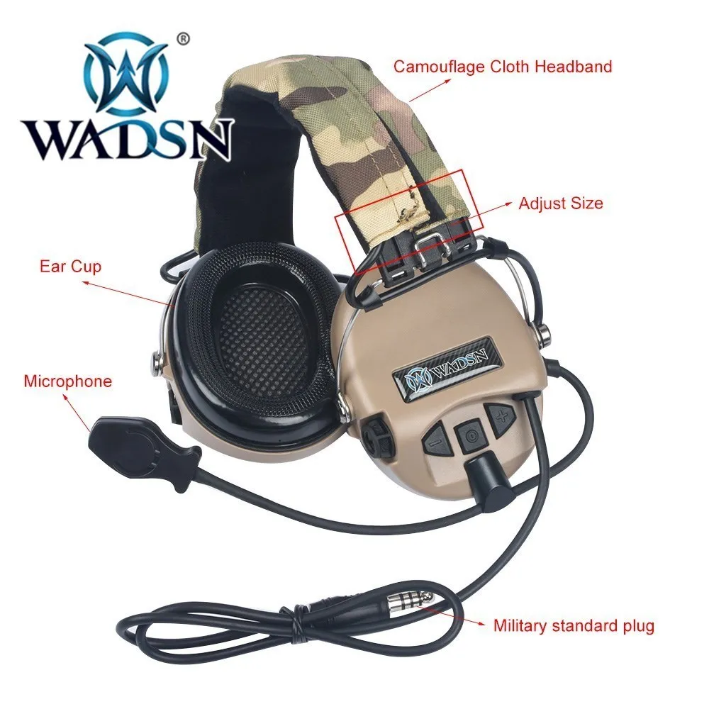 Auriculares tácticos WADSN Auriculares de comunicación MSA 7,0 Enchufe DE LA OTAN Airsoft Juego de caza al aire libre Auriculares Sin Cancelación de ruido