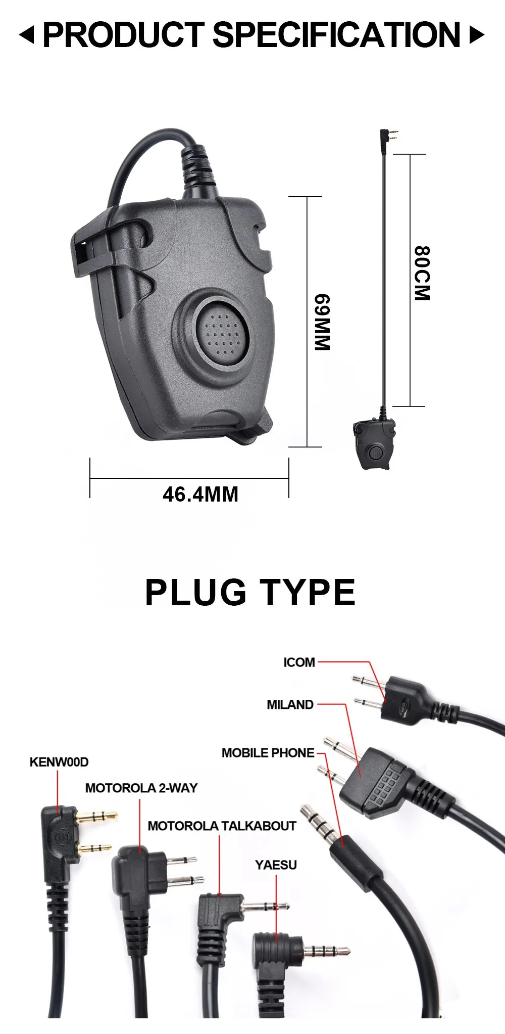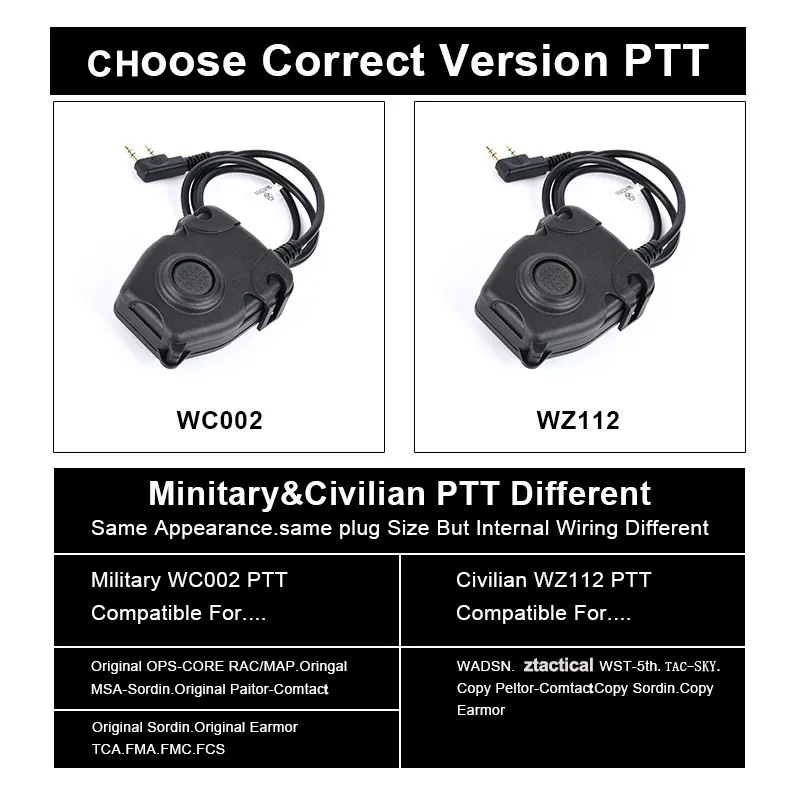 Pelto PTT para auriculares COMTACTO/MSA/EARMOR/TCA/TRI (El PTT de la serie WC es adecuado para auriculares militares y el PTT de la serie WZ es adecuado para auriculares civiles.Por favor revisa el pedido claramente)