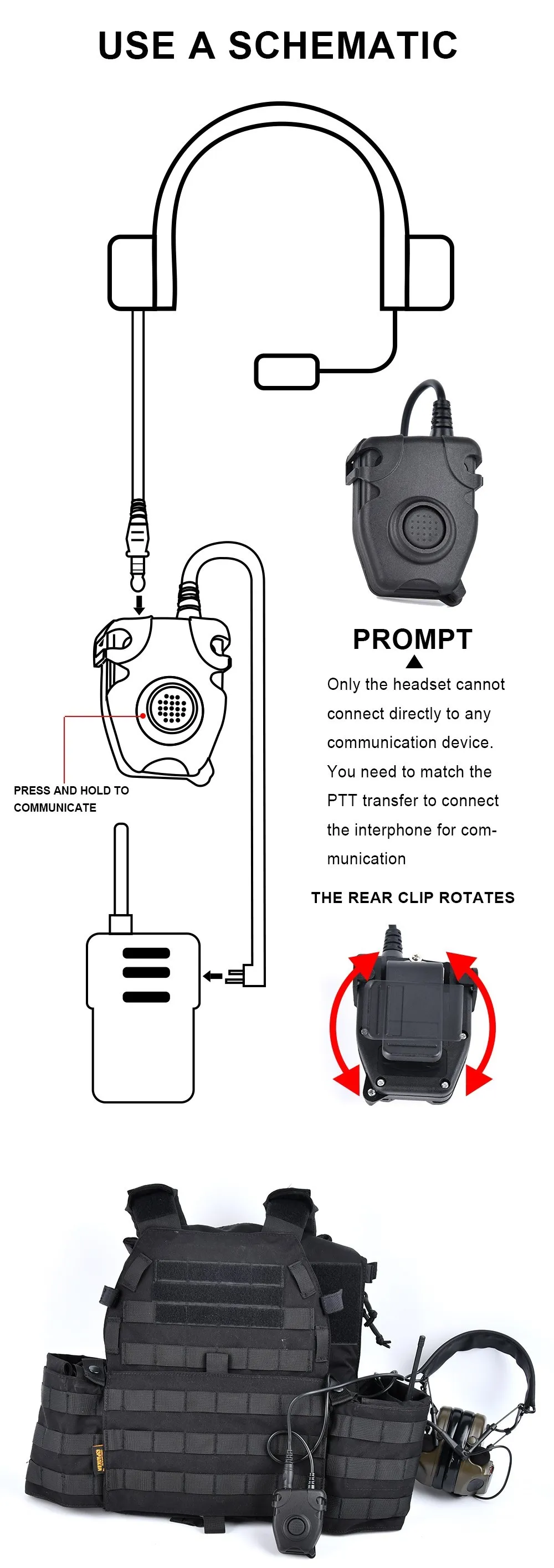 Pelto PTT para contacto/MSA/EARMOR/TCA/TRI auriculares (La serie WC PTT es adecuada para auriculares militares, y la serie WZ PTT es adecuada para auriculares civiles. Compruebe claramente el pedido)