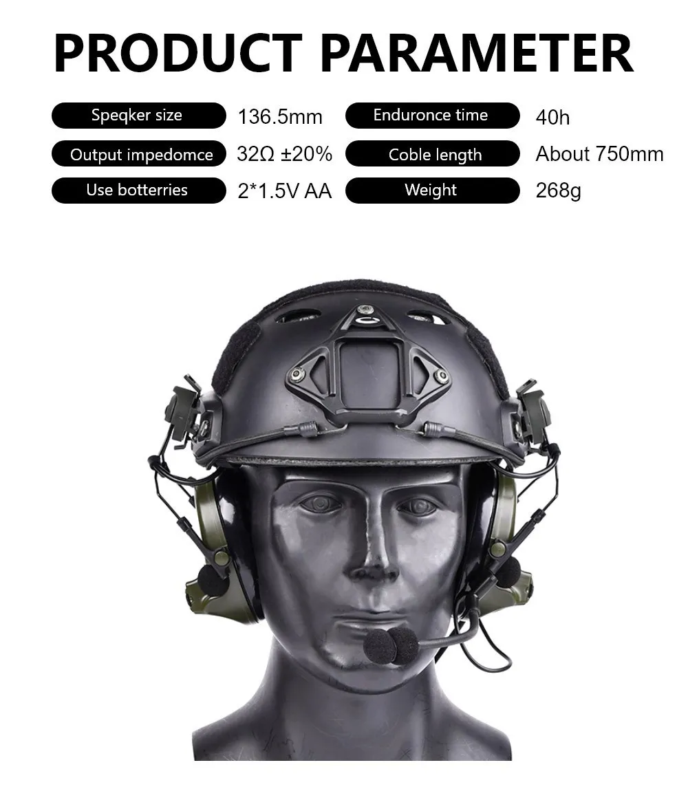 WADSN-auriculares de tiro de caza del ejército Tacti, cascos Airsoft Paintball CS Wargame, sin recogida, reducción de ruido