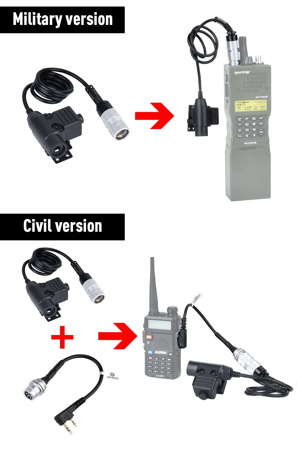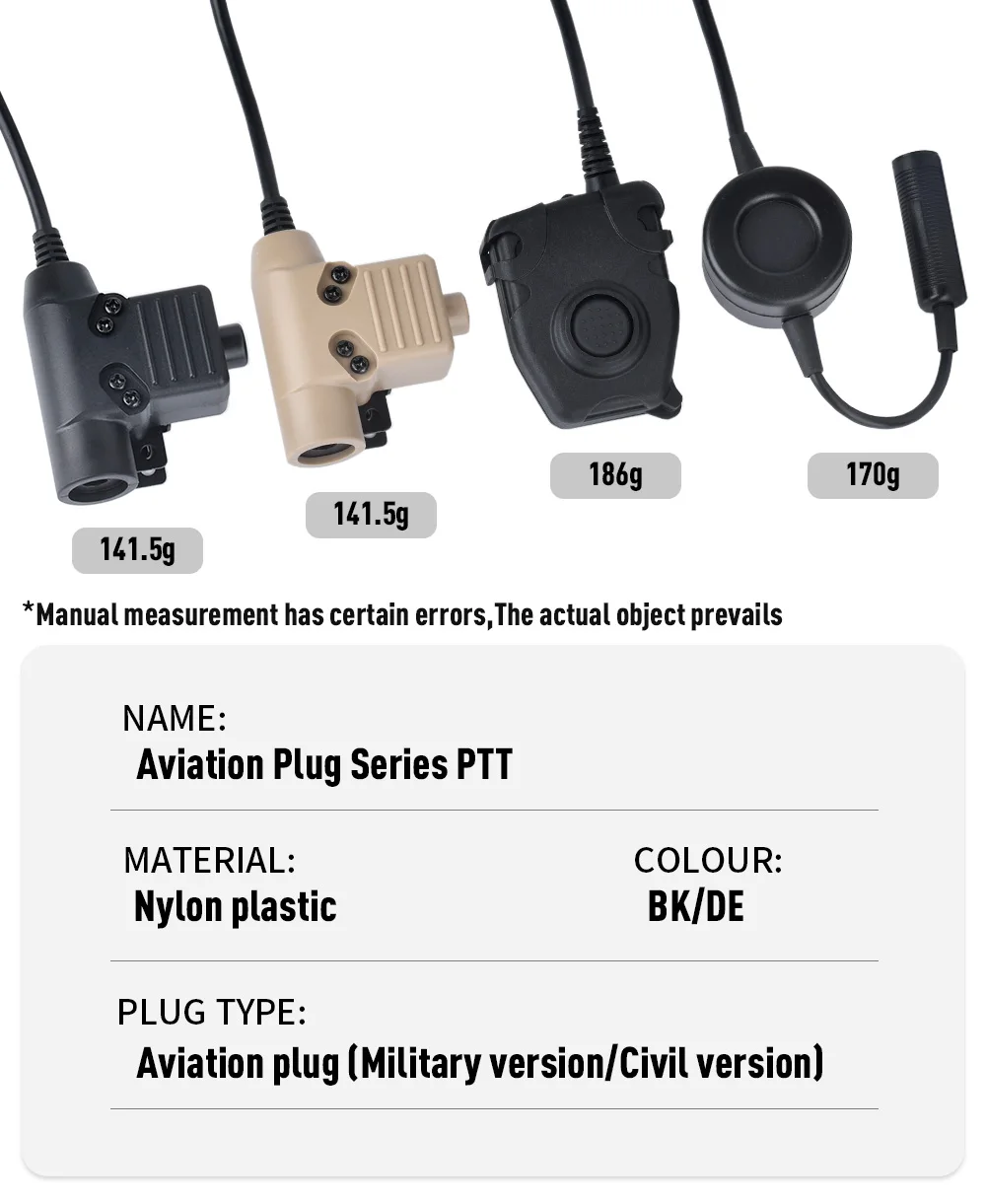 WADSN enchufe de aviación Kenwood PTT auricular de caza civil enchufes 7,0 aptos para PRC-152/PRC-148 modelo simulado U94 Baofeng walkie-talkie