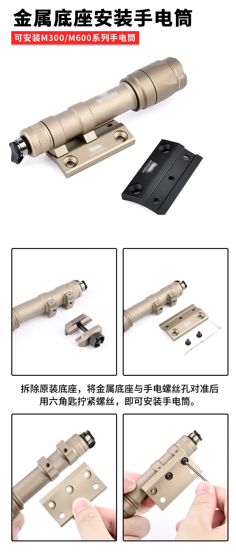WADSN-Base de desplazamiento de linterna M300 M600, equipo de luz táctica compatible con m-lok/Keymod, Metal DD serie M300/M600, Base de montaje de linterna