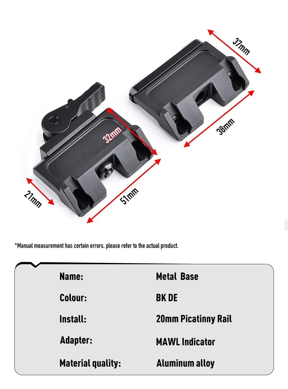 WADSN-Base láser de MAWL-C1 de Metal, Base de palanca QD rápida, montaje Offset compatible con riel Picatinny de 20mm, equipamiento Airsoft, accesorios de derivación