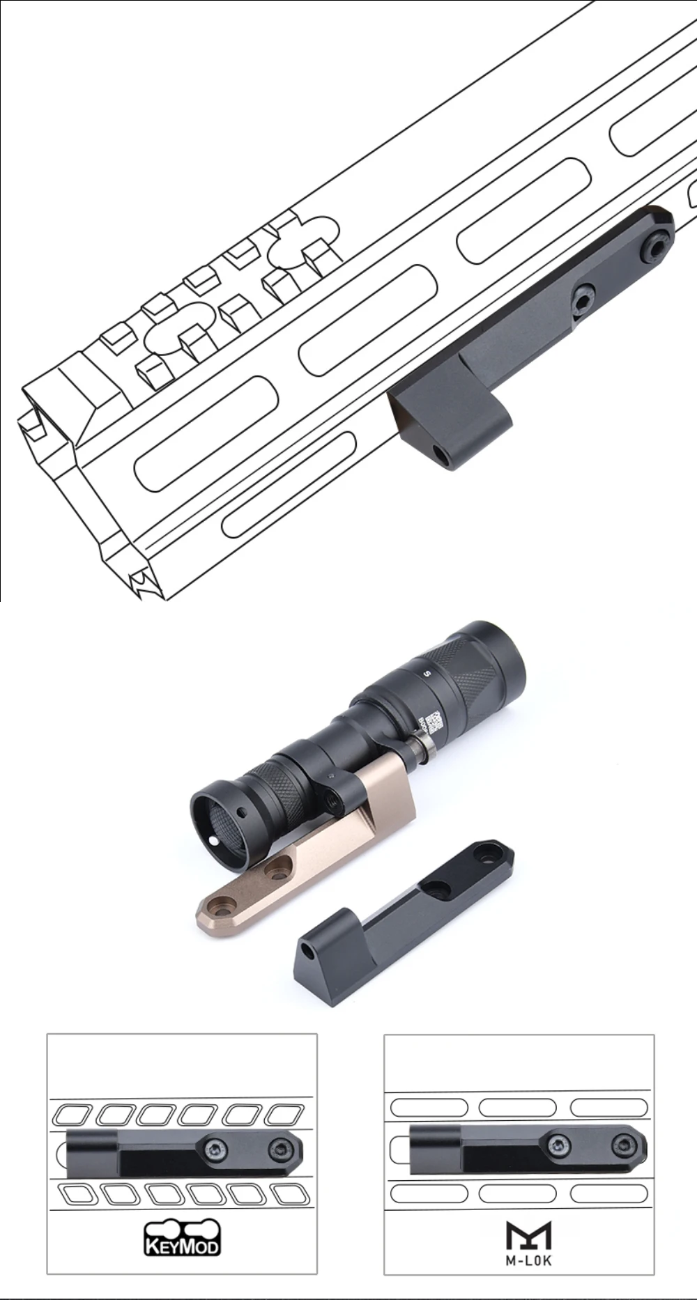 WADSN Base de linterna de Metal para linterna M340 M640, Kit de montaje en riel Mlok, soporte de montaje compensado para linterna de aluminio