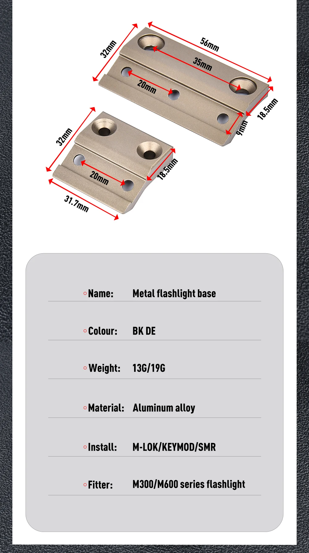 WADSN-Base de montaje para linterna táctica SM-R, sistema MLOK KEYMOD, carril para M300 M600 M340 M640, luz de explorador, equipo de caza Airsoft