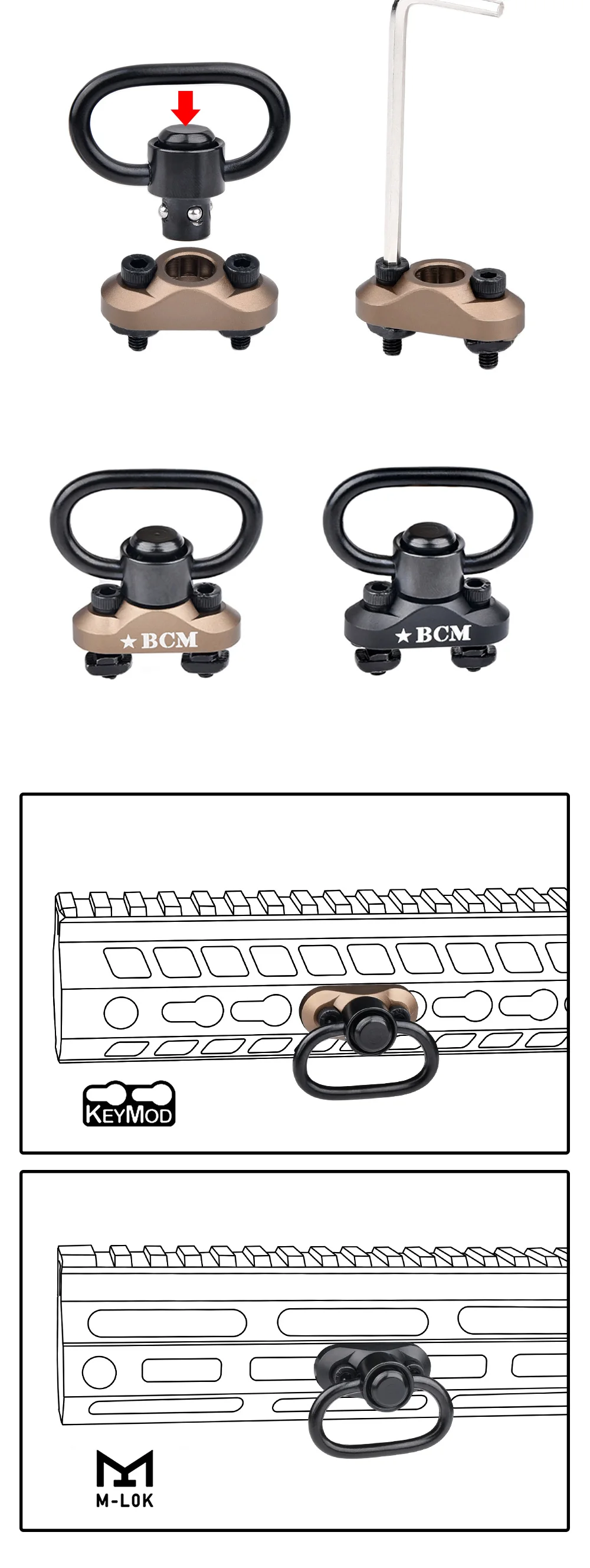 WADSN BCM QD Sling adaptador giratorio montaje en riel M-LOK hebilla de correa correa de Metal bucle QD correa montaje en riel botón de acero SliSteel