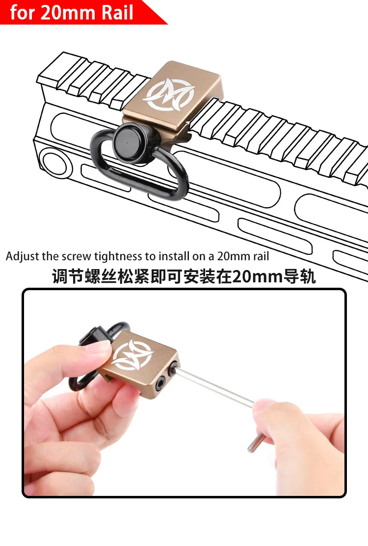 Wadsn Metal Rotación QD Sling Swivel 45 ° Offset Caza Correa de hombro Hebilla Fit 20mm Picatinny Rail Botón de liberación rápida