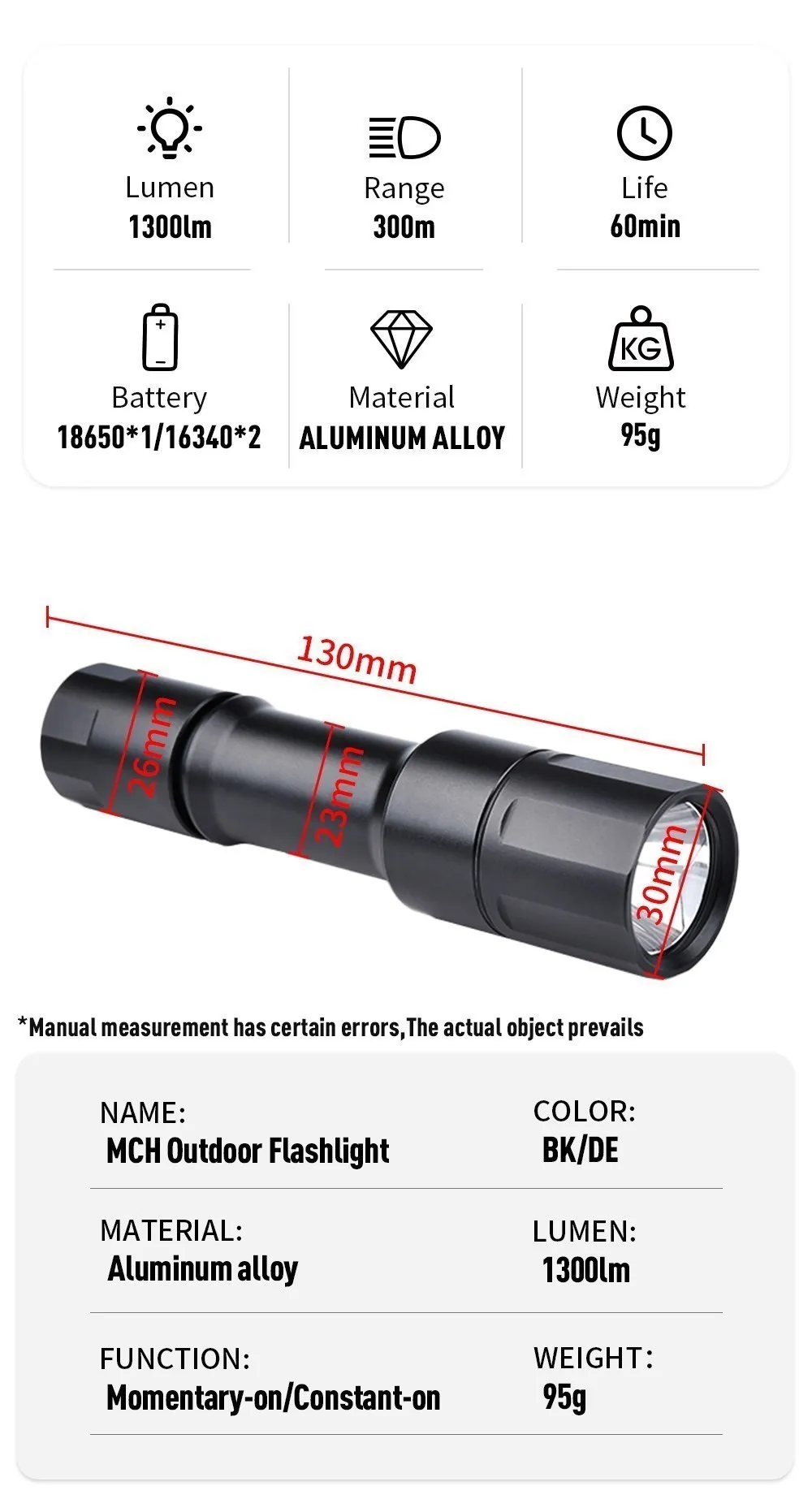 WADSN-Casco táctico Scout Weapon Light, lámpara LED blanca de mano para casco táctico, montaje rápido, accesorio de caza, 1300 lúmenes