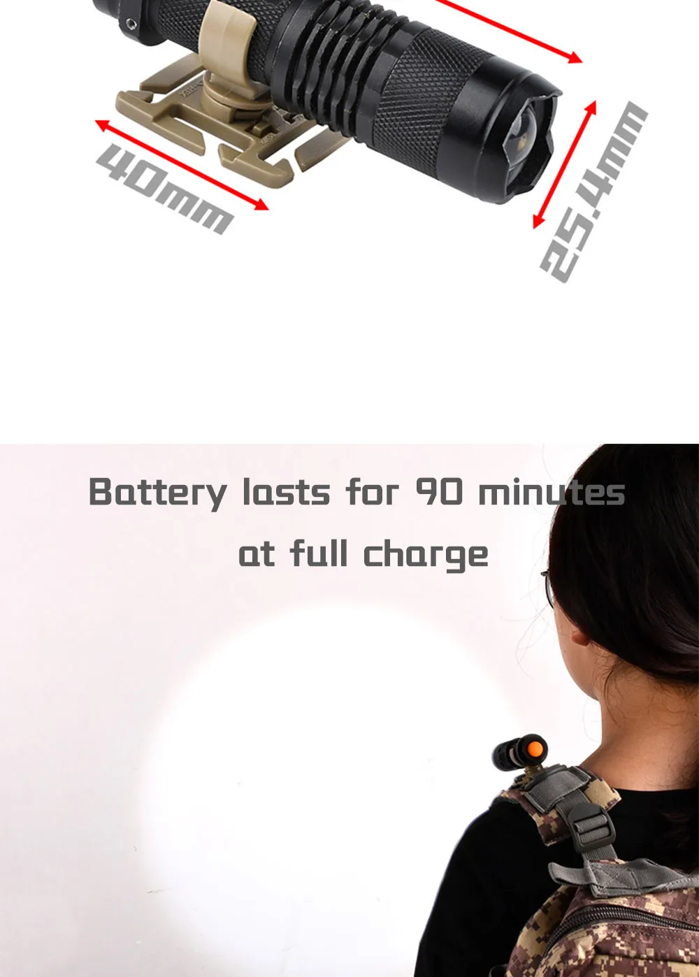 WADSN Chaleco de mochila táctica, sistema Molle, linterna de hombro, iluminación exterior, Flash de alto brillo, montañismo giratorio