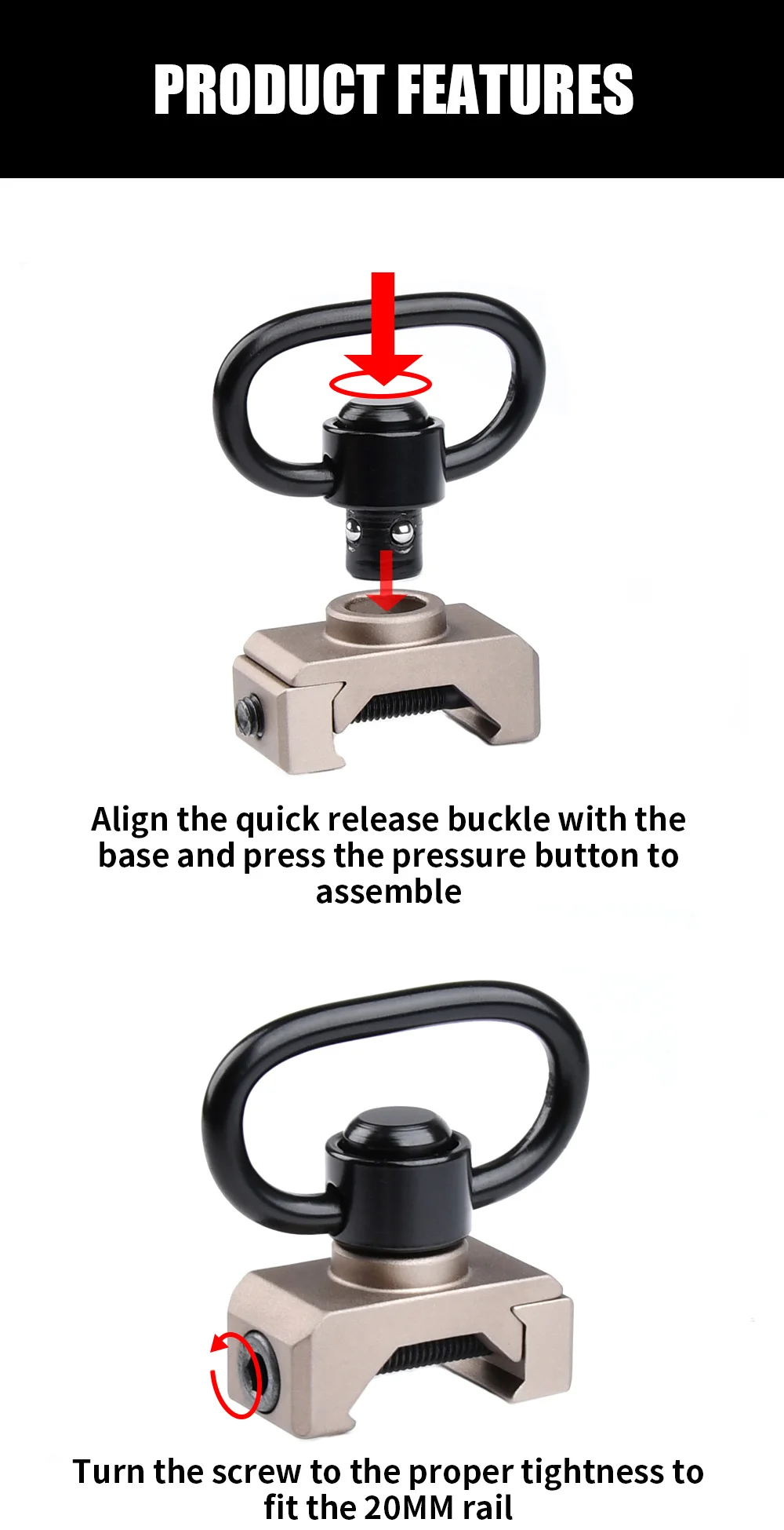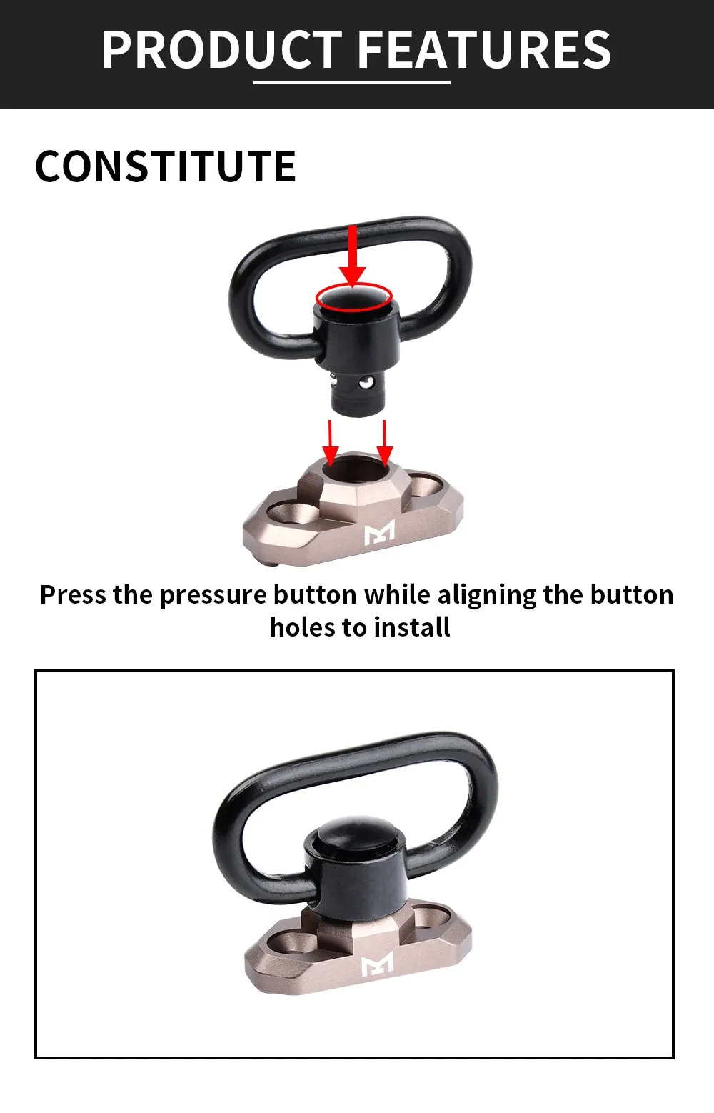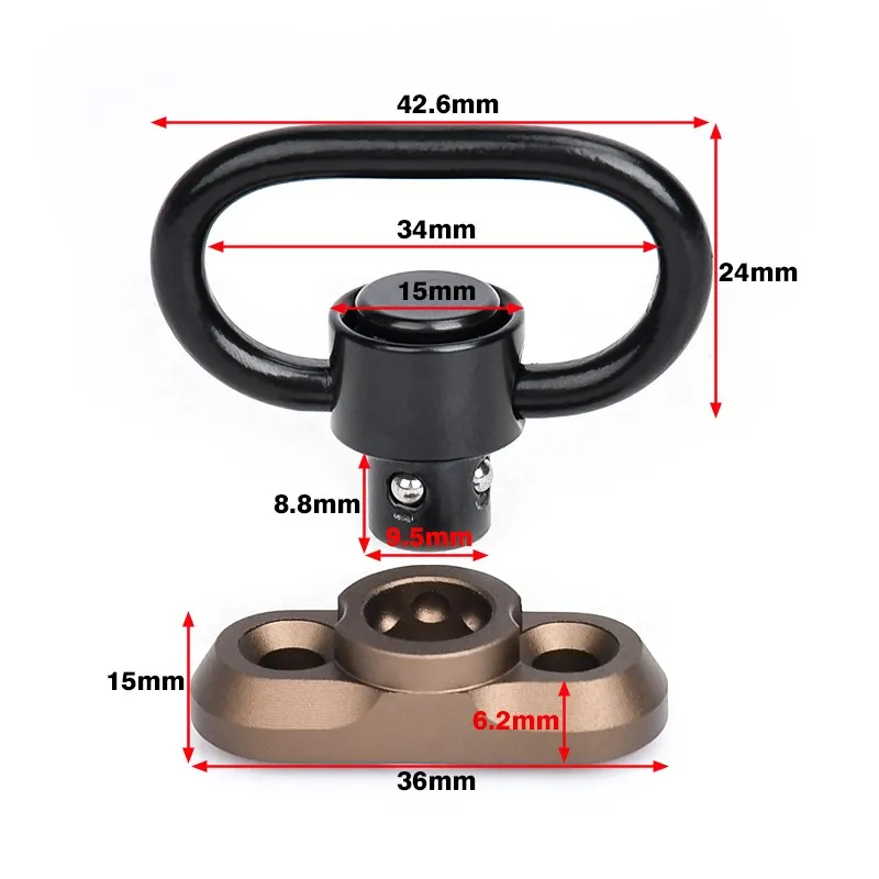 Wadsn-Correa giratoria de liberación rápida para caza, accesorio táctico CNC AR15 QD, montaje de fijación, adaptador de hebilla, botón de rotación M4