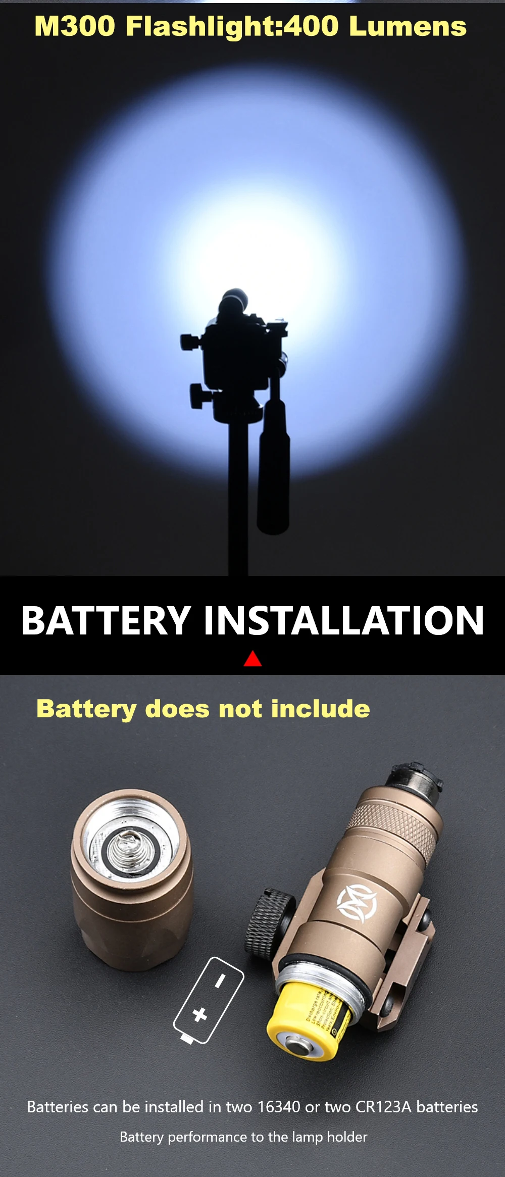WADSN M300A linterna 400 lúmenes táctico LED caza Scout conjunto de luces M300a interruptor de foco montaje trasero Base de montaje 20MM carril