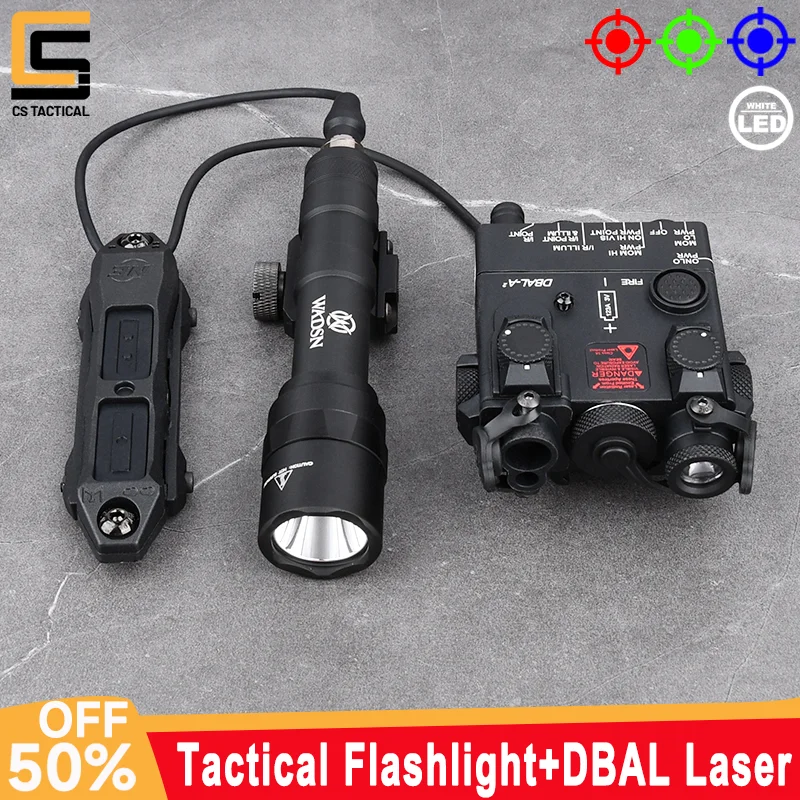 WADSN-DBAL-A2 táctico láser de punto rojo, verde, azul, M300A, juego de luz de explorador de caza, DBAL A2, linterna LED blanca con interruptor de presión