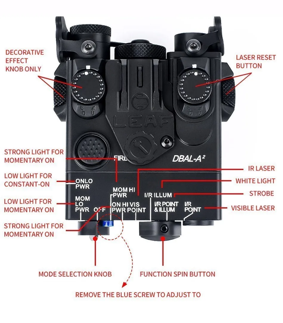 3. Función: Láser de punto verde, IR, luz blanca, estroboscópico y objetivo cero.