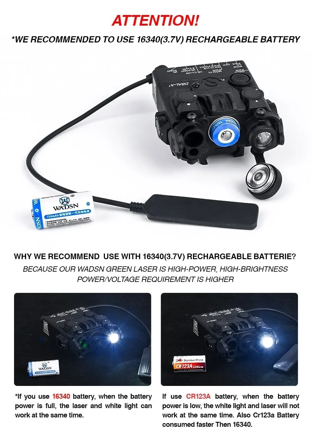 Wadsn Airsoft táctico, punto rojo y verde, doble haz, mira láser, linterna, DBAL, PEQ, Arma de caza AR15, Rifle, NO IR