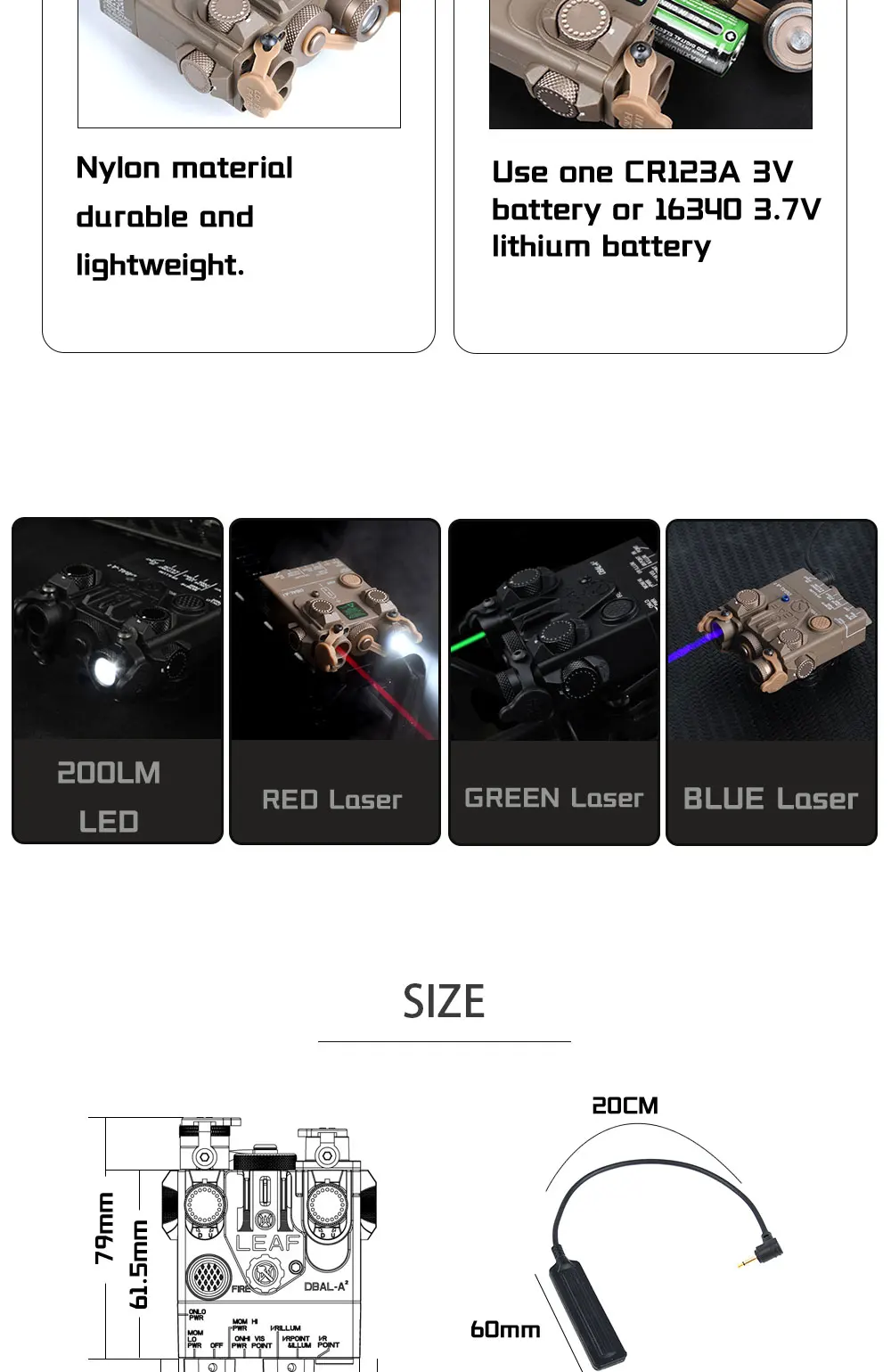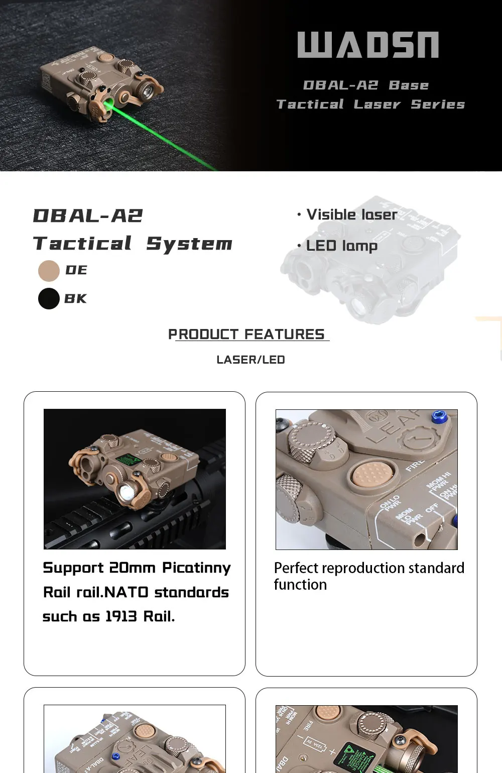 WADSN DBAL A2 táctico verde rojo azul punto Nylon IR luz LED linterna luz de caza DBAL-A2 PEQ MAWL accesorios AR15