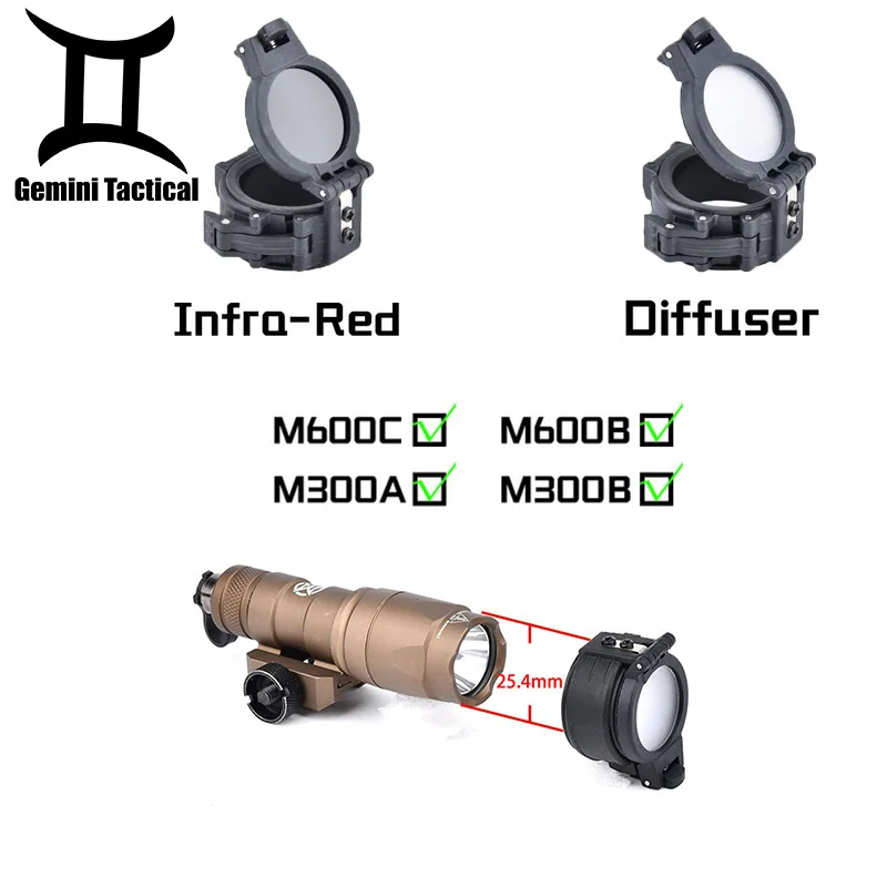 Wadsn-difusor de linterna de explorador de armas M300 M600, filtro de lente infrarroja, cubierta protectora para caza al aire libre, linterna de luz de nailon