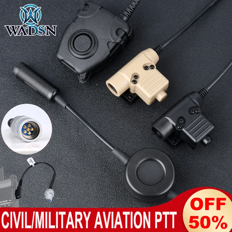 Enchufe de aviación WADSN Kenwood PTT Versión Civil adaptador de auriculares compatible con Walkie-talkie Baofeng U94, modelo ficticio de 1/2"