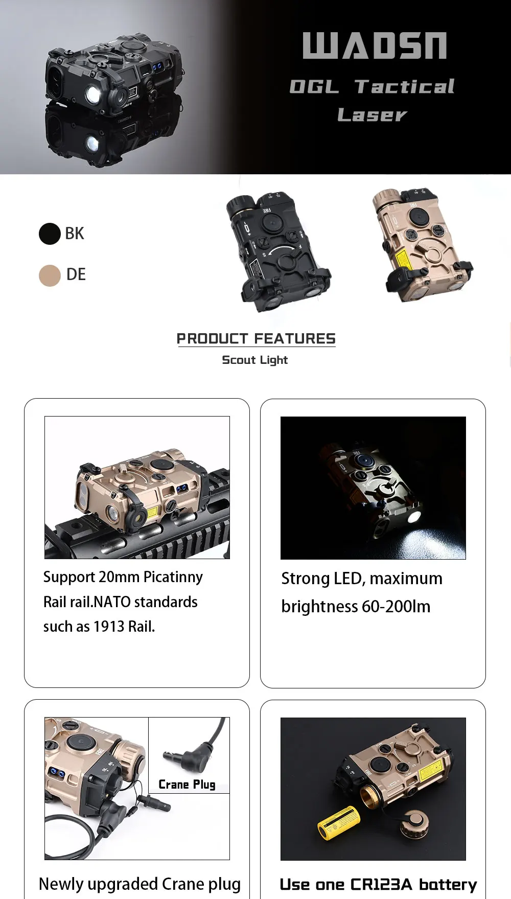 WADSN EOTE táctico OGL aluminio IR indicador vista rojo verde azul punto luz blanca linterna estroboscópica arma de caza ajuste riel de 20mm