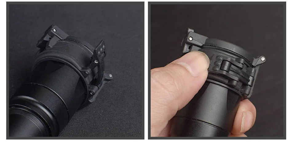 Nota: Mida el tamaño de los auriculares de su linterna. Compare con nuestro tamaño de filtro. Si no se puede instalar directamente, quítese el anillo de goma, abra la hebilla y luego instálelo en la linterna.