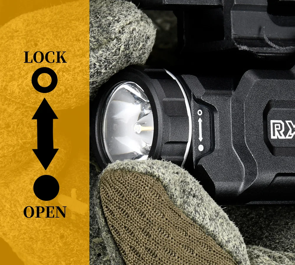 Equipada con potentes bombillas LED, esta linterna táctica ofrece 1000 lúmenes brillantes, lo que garantiza una visibilidad de hasta 200 metros.