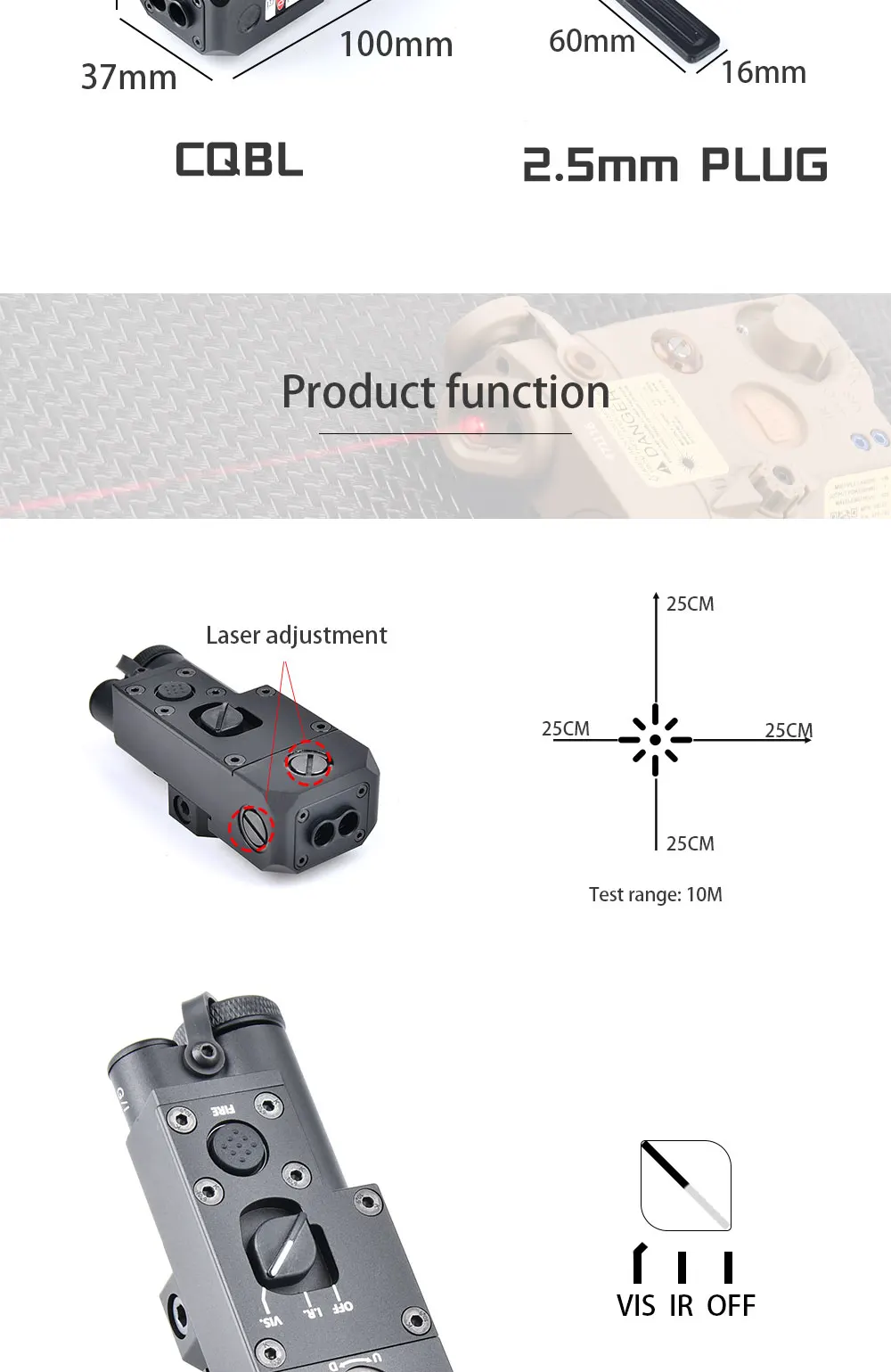 WADSN-indicador láser de punto rojo CQBL, linterna LED blanca con interruptor de función Dual, Airsoft, caza, explorador AR, versión IR de Metal, M300