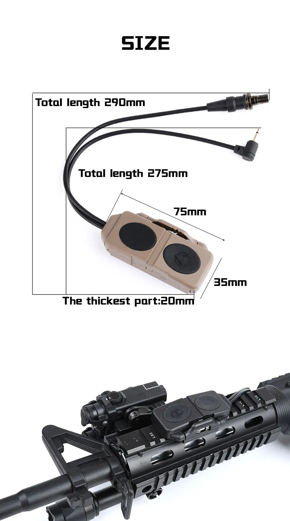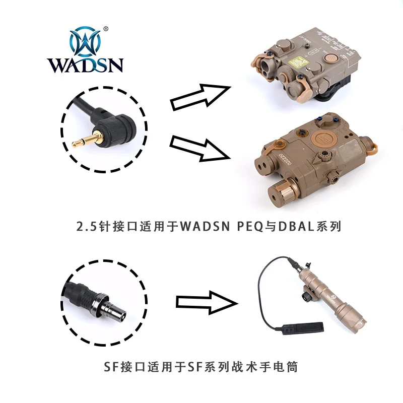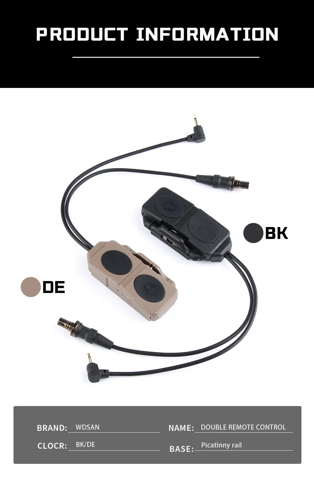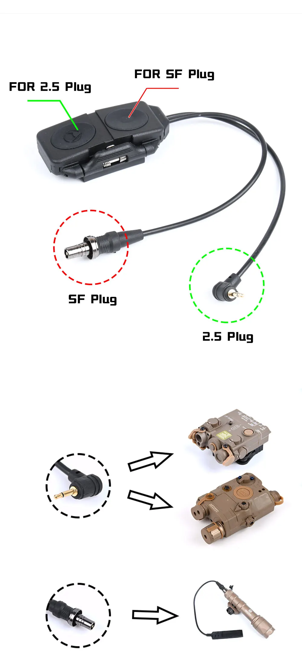 WADSN interruptor doble remoto de presión para DBAL A2 PEQ-15 PEQ16 M600 M300 linterna doble botón de interruptor 2,5 armas Airsoft