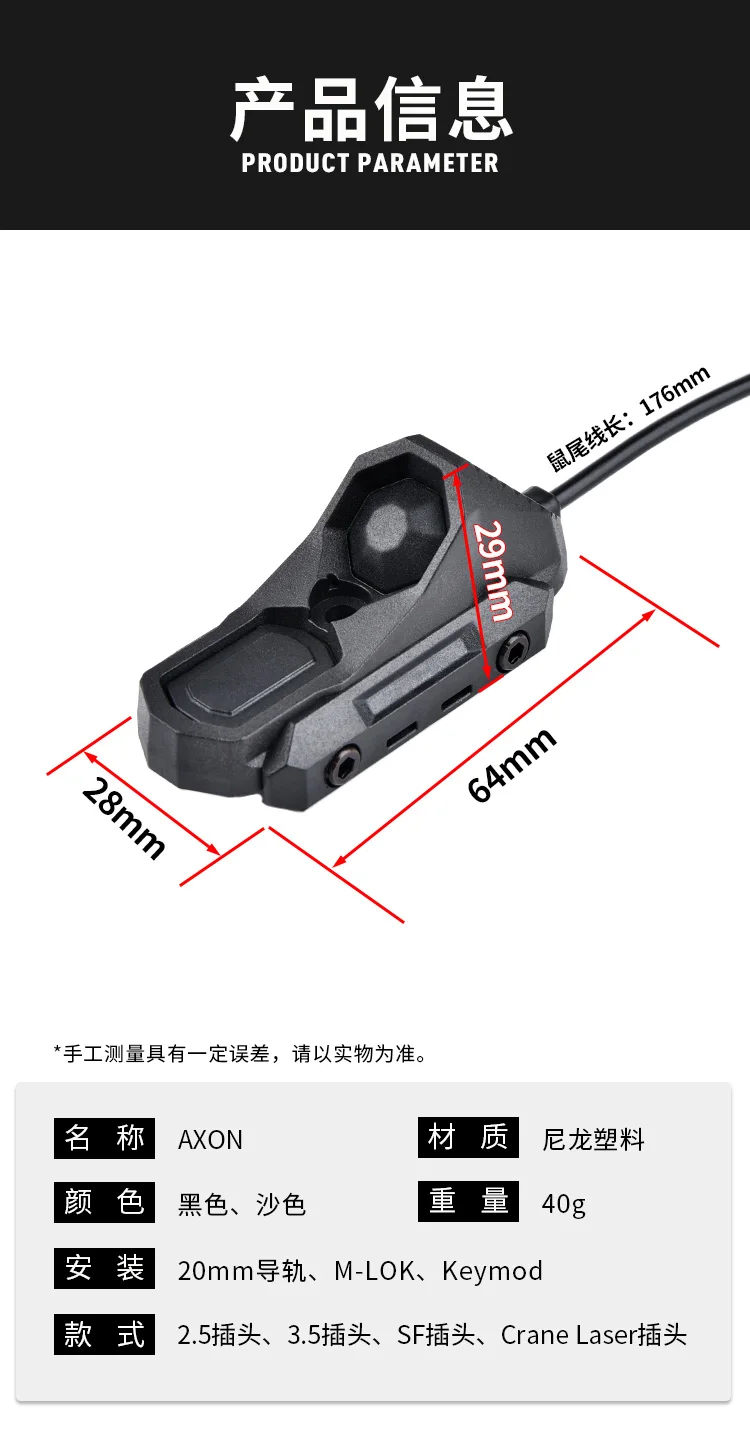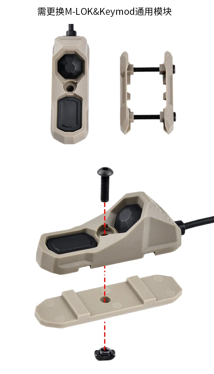 WADSN interruptor de luz de arma Axon MLOK KEYMOD, grúa remota de presión de doble función/SF/2,5/3,5, enchufe para linterna láser, apto para riel de 20mm