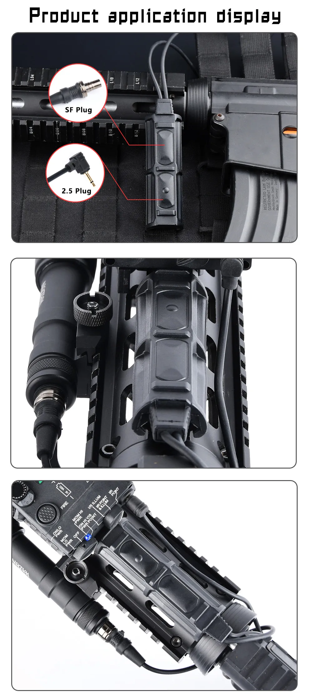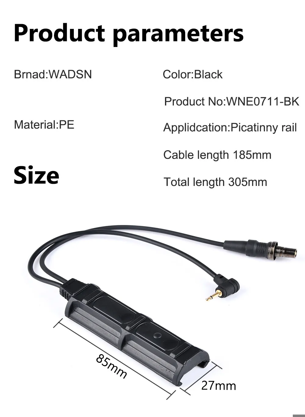 WADSN interruptor de presión Dual remoto, enchufe SF de 2,5mm para PEQ DBAL NGAL M300M600, linterna táctica Airsoft, accesorios de armas de caza