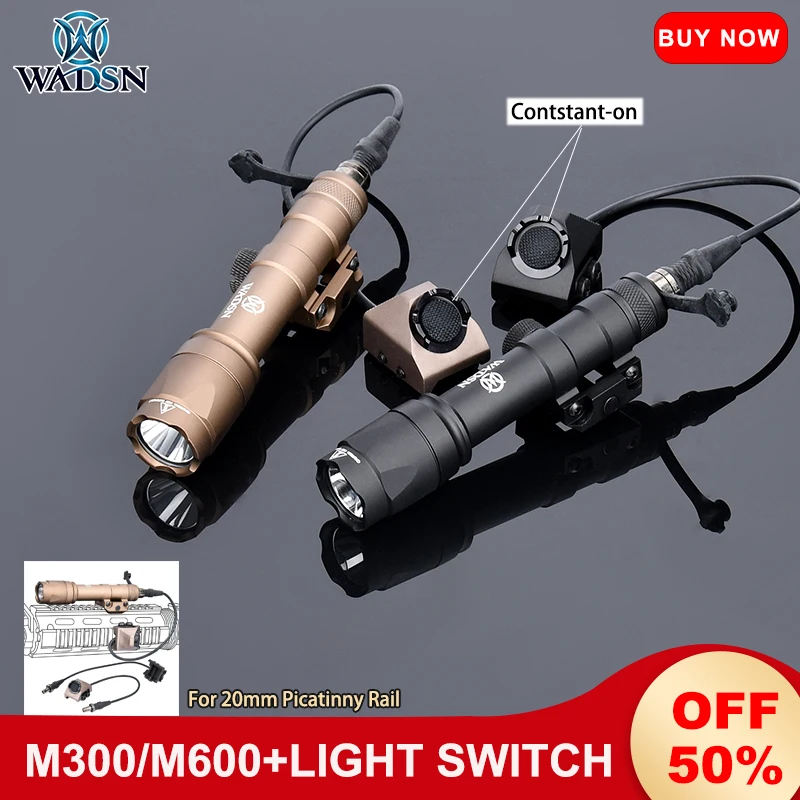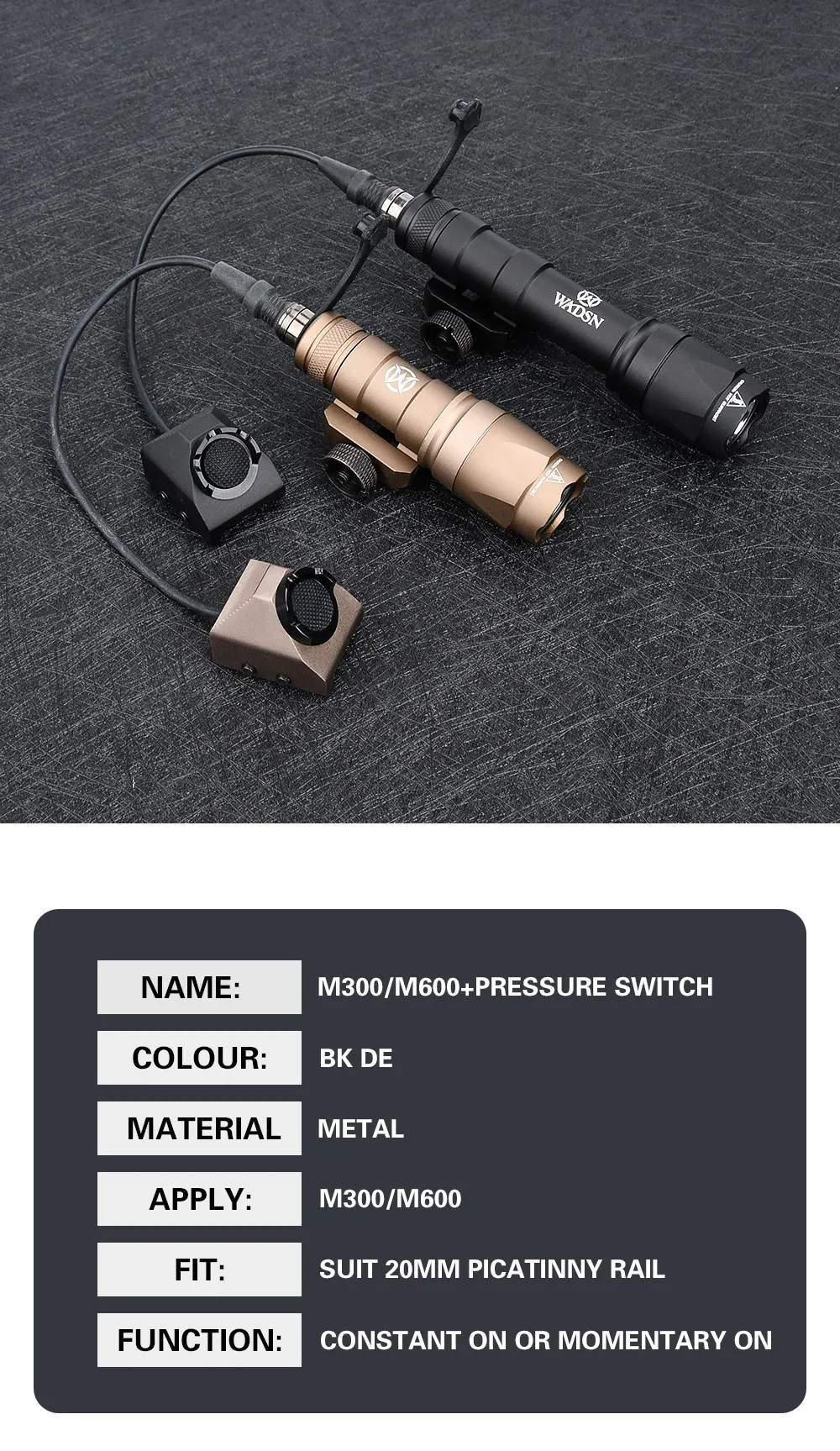 Interruptor de presión de botón caliente táctico UN WADSN para M300A M600, luz de explorador de caza al aire libre, linterna Airsoft AR15 compatible con riel de 20MM