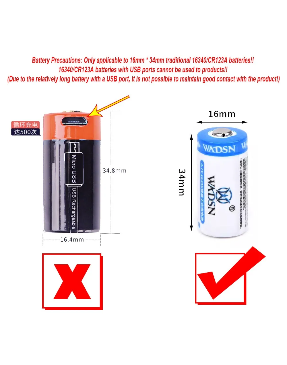 Linterna M600: Batería de 2*3,7 V 16340 o batería de 2*3,7 V CR123A