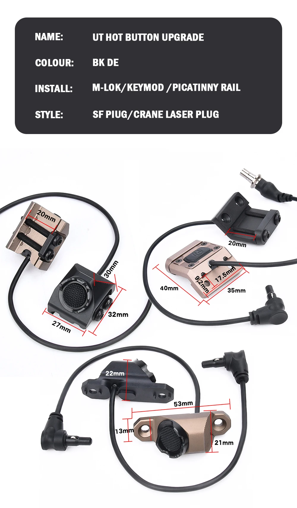 WADSN interruptor de presión de un solo botón para 20mm Picaitnny Tacitcal DBAL-A2 PEQ15 láser M300 M600 linterna Airsoft piezas de armas