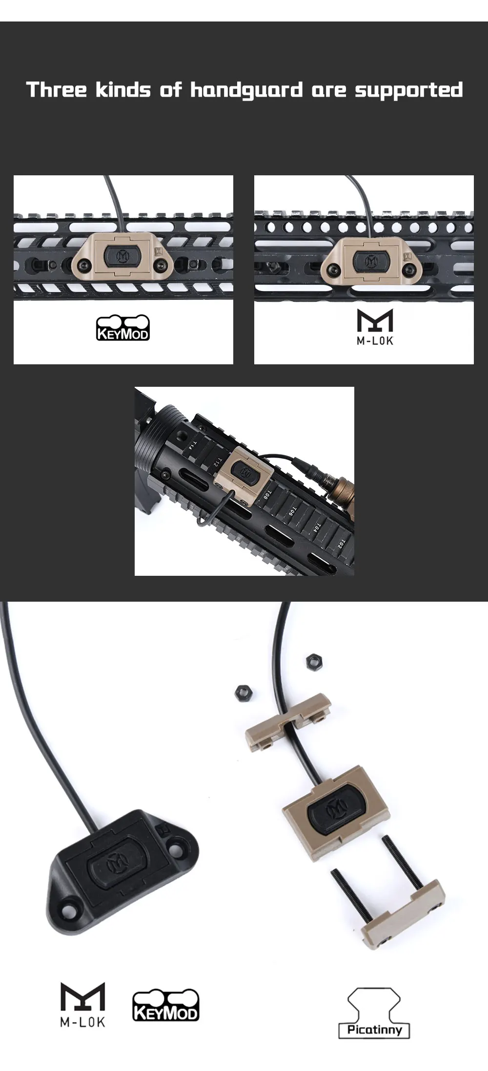 Este interruptor es compatible con una variedad de armas, incluidas AR15, FlashLight M600 y láser PEQ15 DBAL A2, lo que ofrece una amplia aplicabilidad.