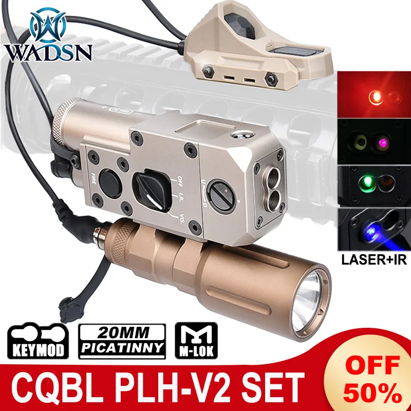 WADSN-Linterna de caza de 1000 lúmenes PLHv2 CQBL, color rojo, verde, azul, con botón UNAXON, interruptor Mlok Keymod