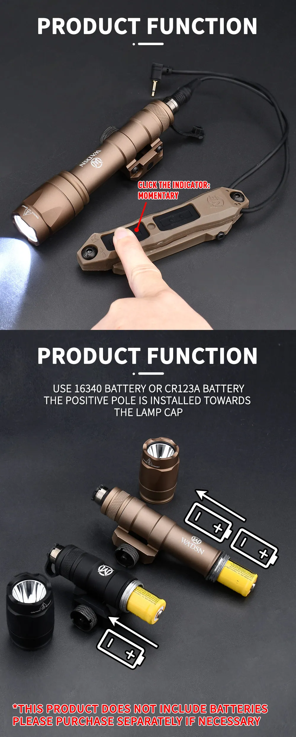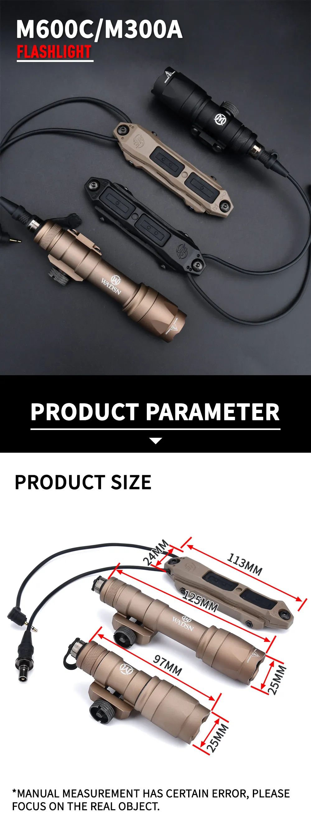 WADSN Metal M300A Scout Light M600C Juego de linterna M300 Caza LED Linterna Interruptor de presión dual Fit M-Lok Keymod 20MM Rail