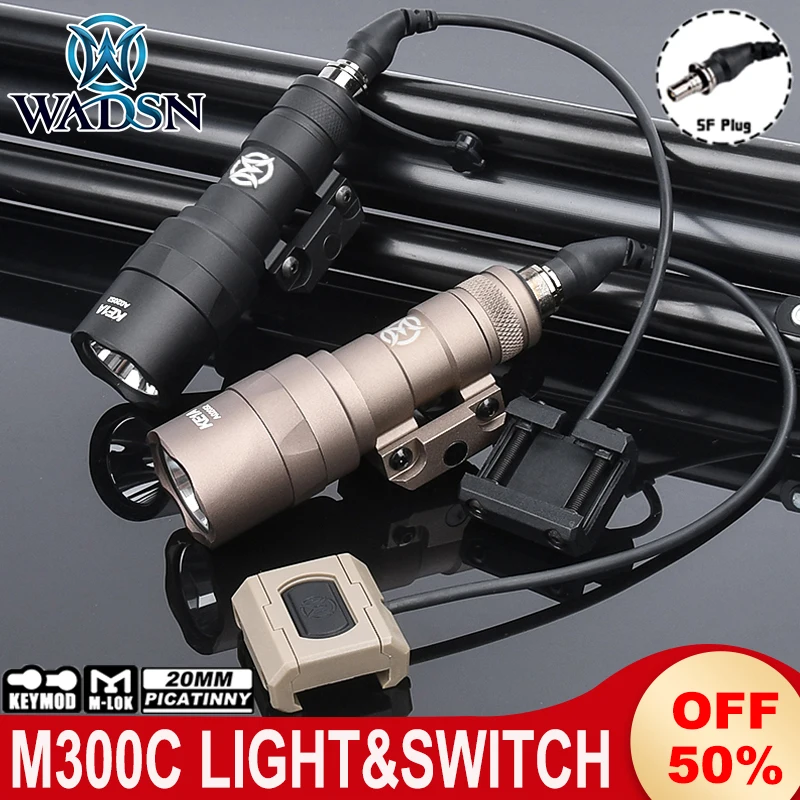 Juego de linternas WADSN M300C, 510 lúmenes, alta potencia, M300c, caza, MINI luz de explorador con interruptor de presión táctico, apto para M-lok Keymod