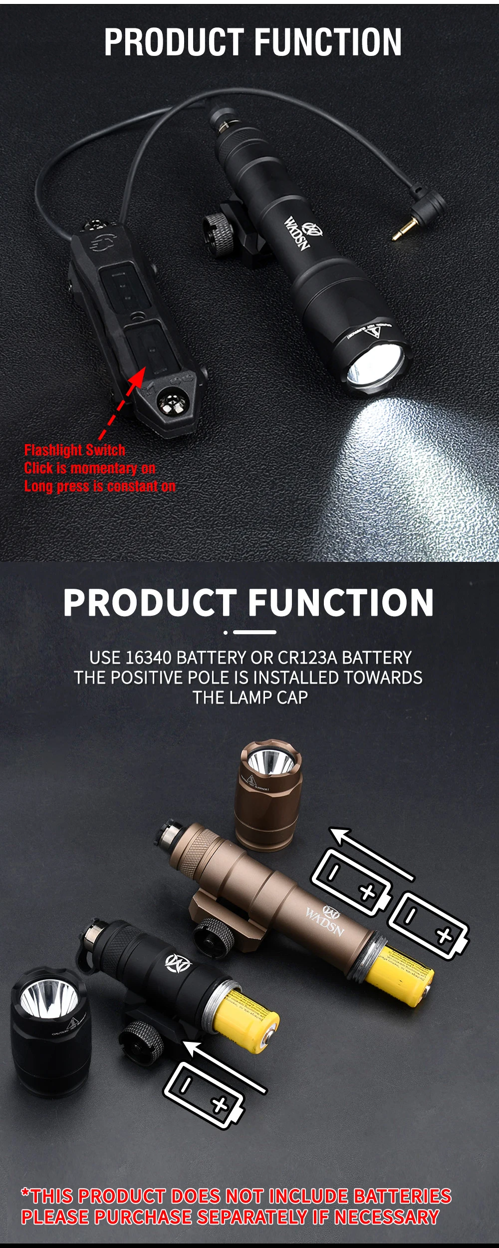 Juego de linterna táctica Wadsn M600C M600c, Arma de caza de alta potencia, luz de explorador, interruptor de presión remoto compatible con M-lok Keymod 20MMRail