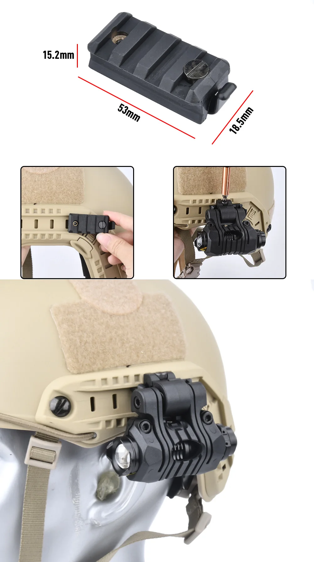 WADSN lámpara de casco estroboscópico Airsoft táctico, luz de explorador blanco, casco de caza rápido, linterna con Zoom