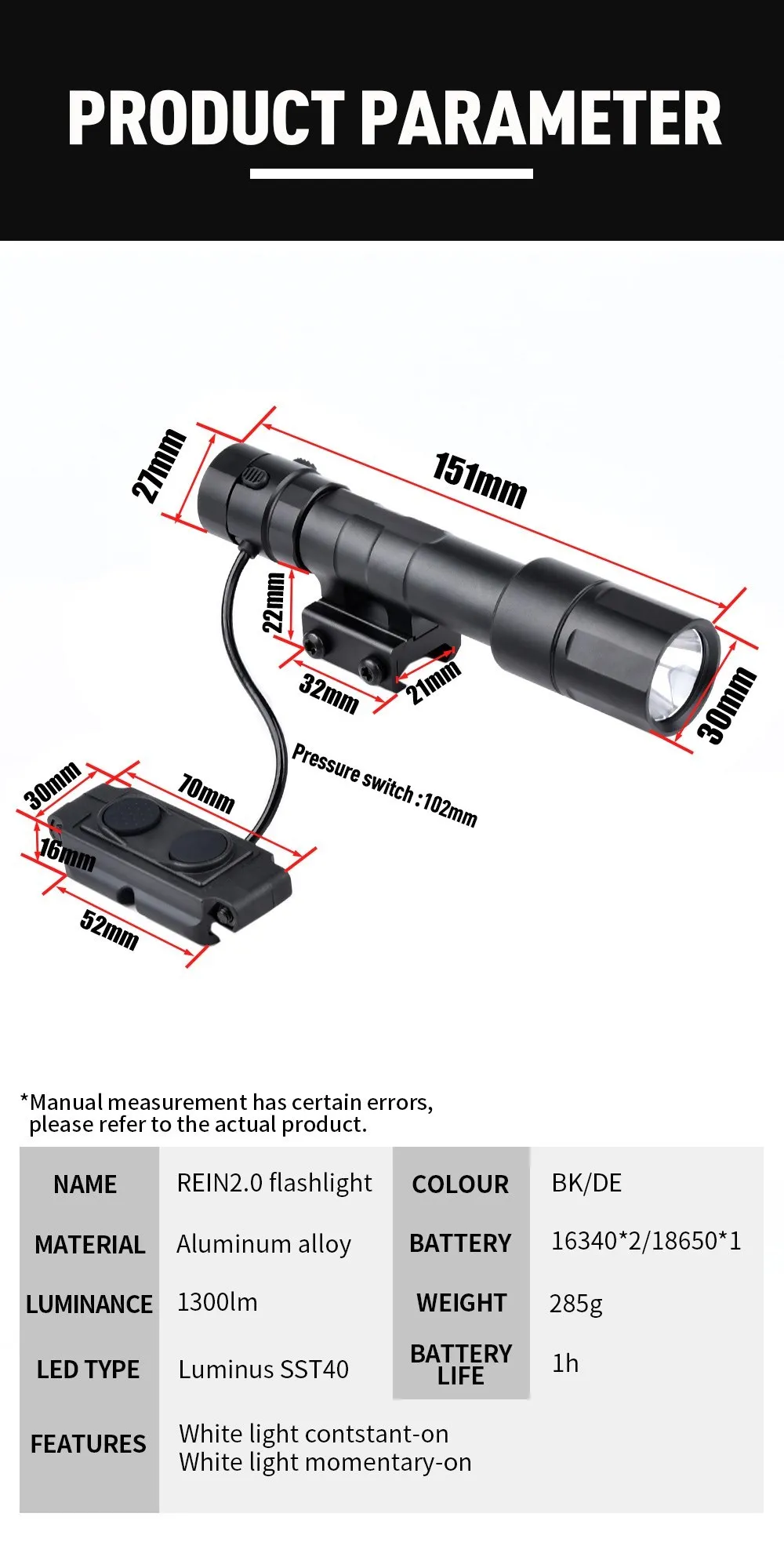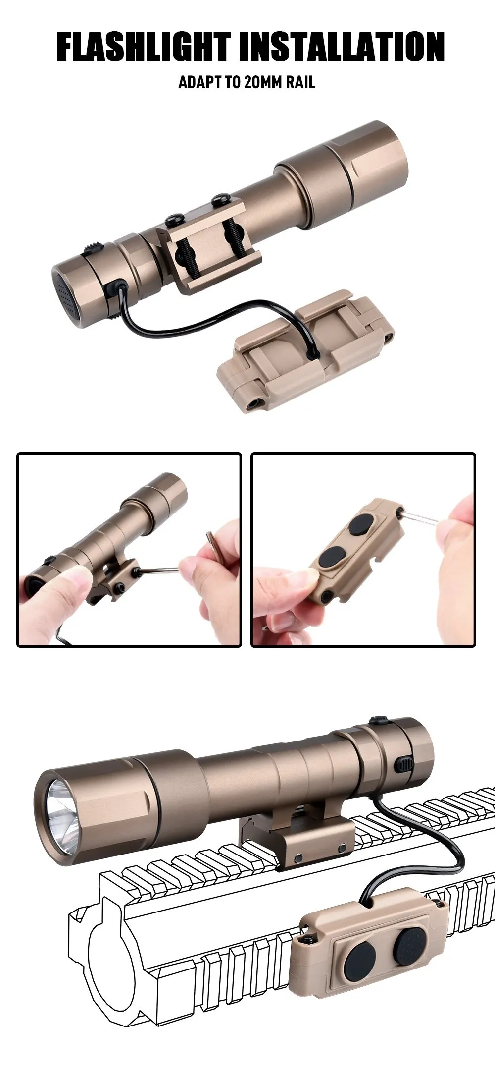 WADSN-linterna de 2,0 lúmenes, luz blanca, 20mm, interruptor de función Dual, Rail, arma de caza, accesorios para explorador y Airsoft, 1300