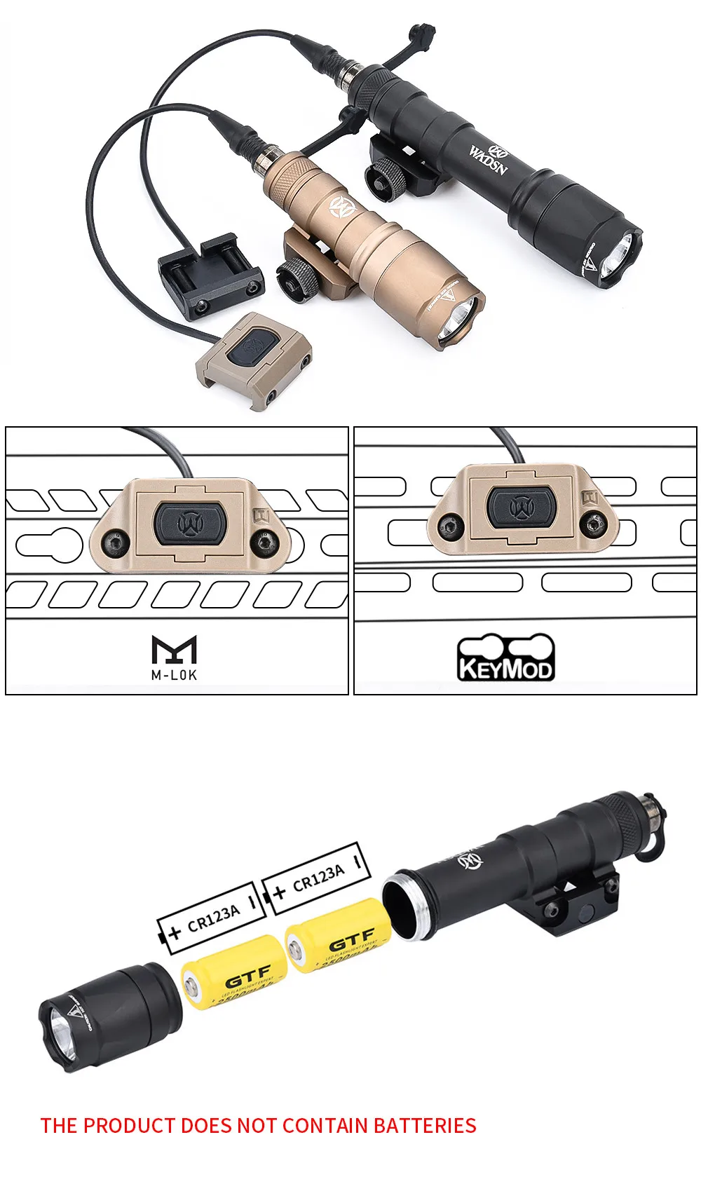 WADSN-linterna de arma táctica M600 M600C M300 WADSN Airsoft, luz de explorador con interruptor Modbutton Lite, compatible con riel Picatinny Mlok