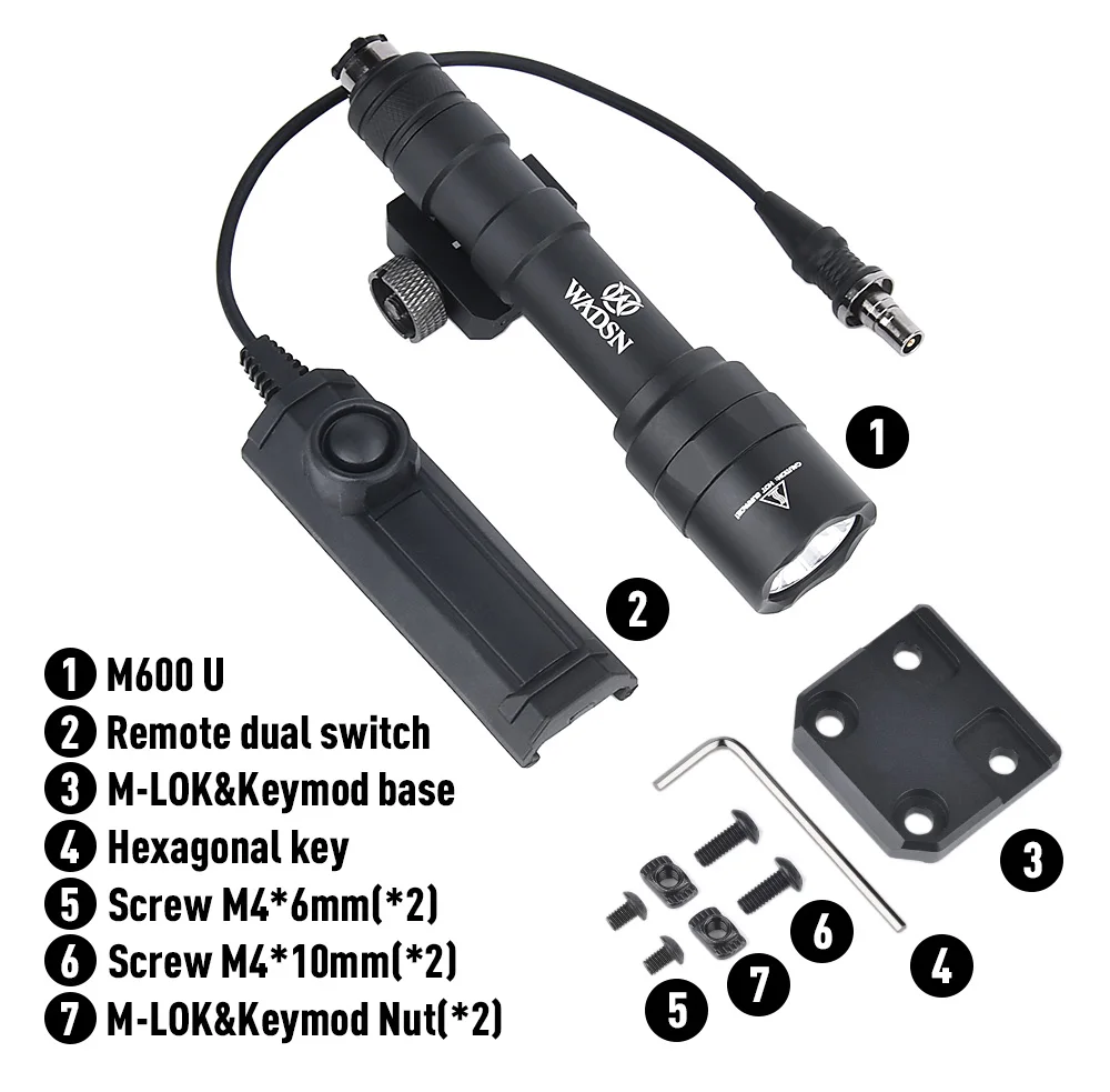 WADSN linterna de arma táctica M600 M600U para Mlok Keymod, Base de montaje, Riel, pistola Airsoft, Arma de caza, accesorios de luz Scout