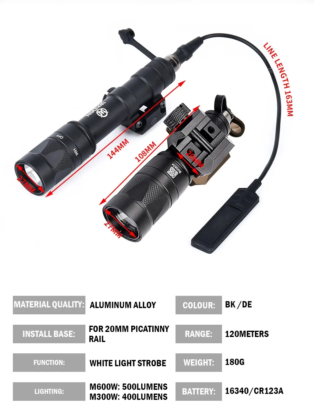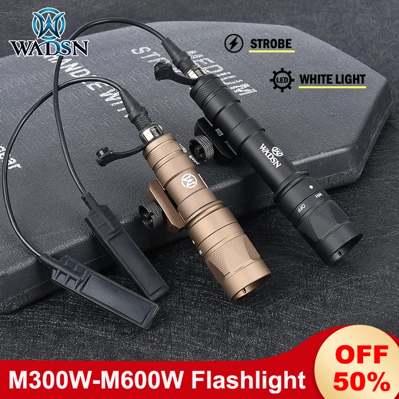 Wadsn-linterna estroboscópica M600 M300W, foco táctico de Metal Airsoft M600W, luz de explorador de caza al aire libre, ajuste de riel de 20MM, 500 lúmenes