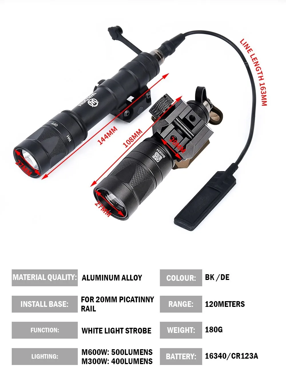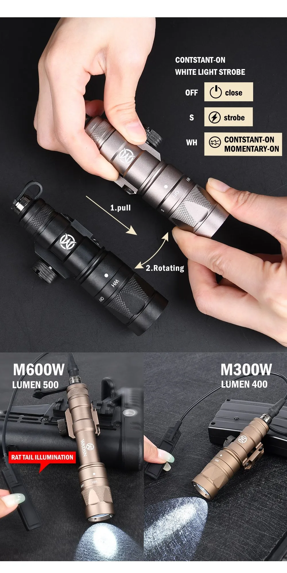 WADSN linterna estroboscópica táctica de Metal, luz para arma de caza, compatible con riel Picatinny de 20mm, M300, M300W, M600, M600W