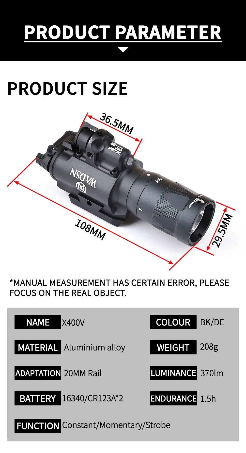 WADSN táctico X400 Ultra X400V linterna estroboscópica X400 arma luz verde/rojo punto láser caza Airsoft pistola para Gloc17 18